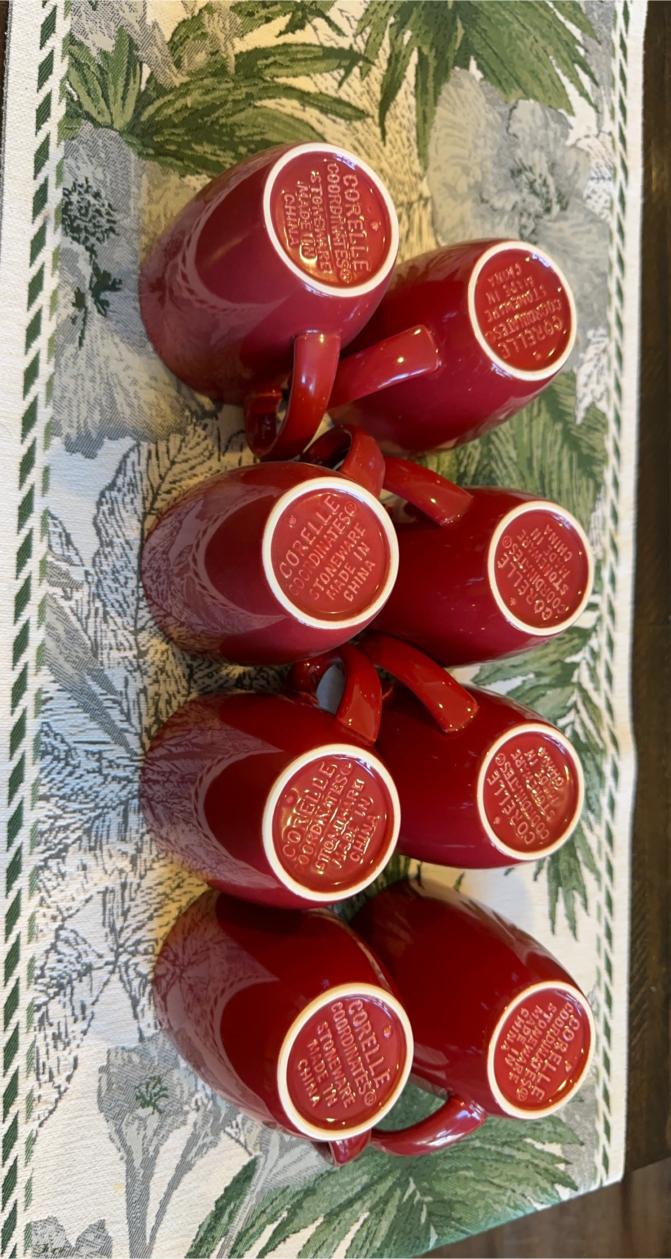 Selling a set of 8 Corelle Coordinates stoneware mugs in a lovely red colour! These mugs are perfect for adding a pop of colour to your kitchen. Rarely used like new.