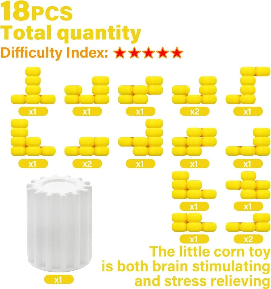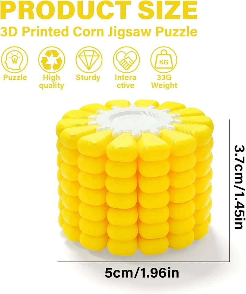 Corn Puzzle Toy(4 Difficulty Levels), Corn Educational Toy for Classroom Prizes, Goodie Bag Fillers 4 Difficulty Levels – From beginner to expert, choose from Easy / Medium / Hard / Master for progressive fun and challenge. Keychain Design – Built-in loop lets you clip it to your keys, backpack, or handbag. Our corn puzzle toys are made of high-quality PLA material. Durable, safe and reliable, no sharp edges. Allows you to play to your heart's content. This corn puzzle features a unique detachable corn kernel design. Inspired by the unique structural elements of corn, it enhances the user experience while exploring and learning about the structure of corn. This innovative corn finger toy promotes cognitive development, problem-solving and fine motor skills, allowing you to have fun while thinking and solving problems. Corn puzzle toys are a great choice for birthdays, holidays, or educational milestones. Suitable for a variety of play environments, suitable for home, classroom and more, encouraging group activities and social interaction. Package includes 1pcs 3D printed corn toy. Small size is 3.7 x 5cm/1.45 x 1.96in. Difficulty level. Fun and educational, helps improve brain, eye and hand coordination. Ideal for killing time and staying away from electronic products.