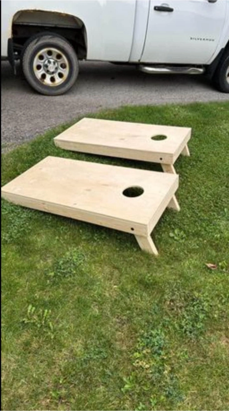 2 sets of boards currently ready for pick up. 24”x48” Solid 2x4 frame and legs with smooth sanded birch plywood tops. Plain $70 for single board $130 for a set of two boards All boards come with rope handles for easy carrying. Bags available for $40 Custom orders are currently on hold. See my page for custom order ideas, dm for pricing on custom orders, note there is a queue for custom orders as they take more time. https://www.facebook.com/share/khi6Q4Zt1eYUabBX/?mibextid=LQQJ4