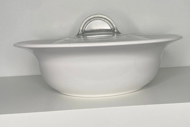 Go oven to table to fridge with the Corning Ware Casual Elegance 10 Inch Covered Casserole Dish. Designed for both beauty and function, this durable, quality casserole dish is perfect for baking, serving, and storing your favorite meals. Its sleek design and white color that is augmented with a floral design complements any table setting. Use the fitted lid to ensure heat retention and easy transport and no mess storage. This Corning Ware Casual Elegance 10 Inch Covered Casserole Dish measures approximately 10 inches in diameter and 3 inches deep. There are no cracks or chips and the lid secures properly. Local pickup is in Etobicoke near Islington and The Westway.
