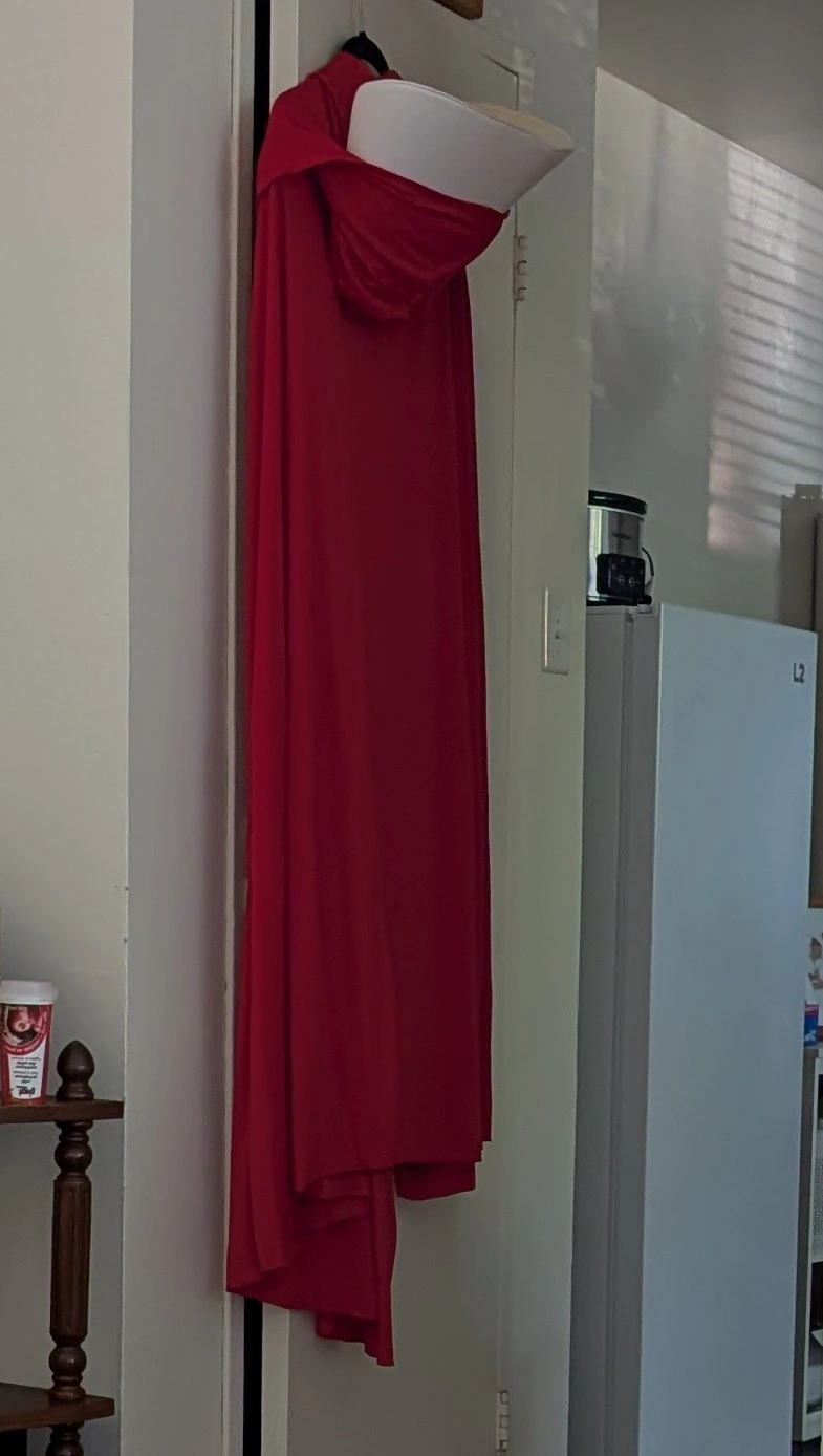 Handmaid's Tail or Red Riding Hood costume. It comes with the white cap and a headband.It looks to be in great condition and ready for a new home. Great for parties or just for fun! ages from 12 to adult. It also has Velcro so you close the cape and it will stay closed