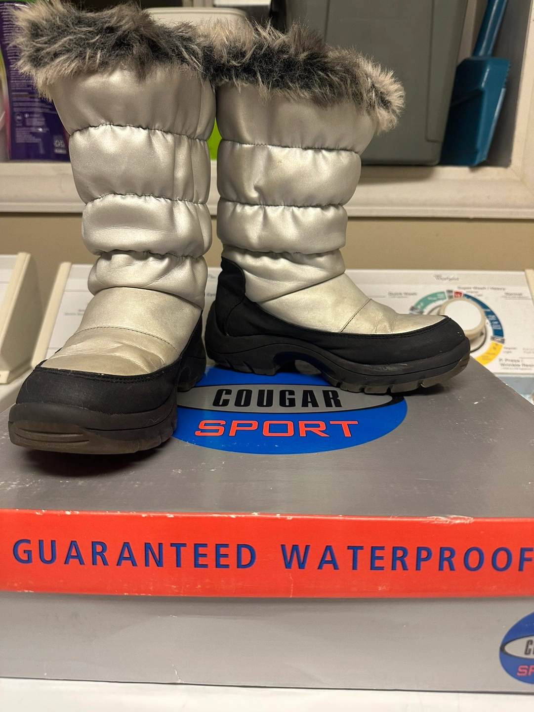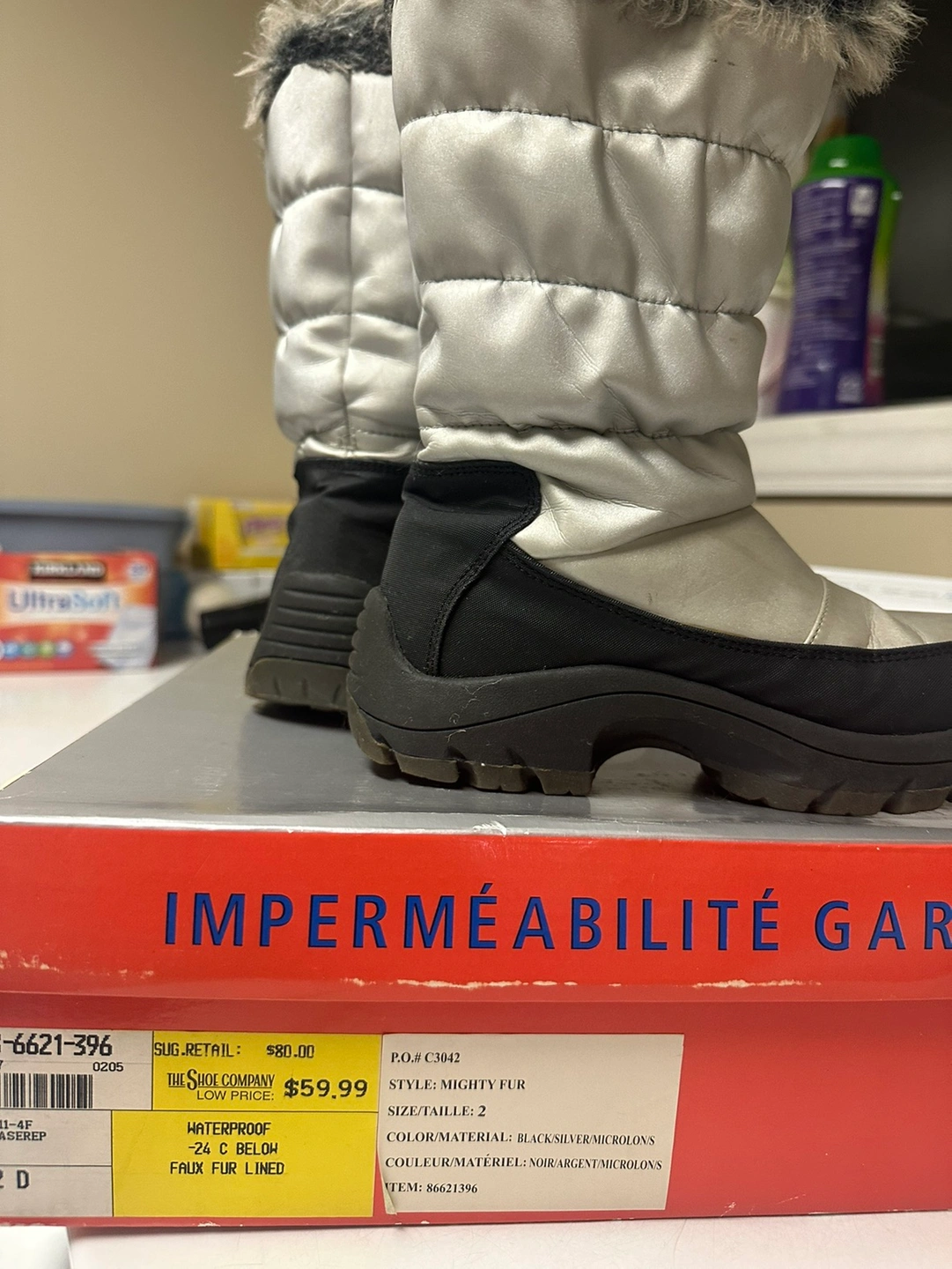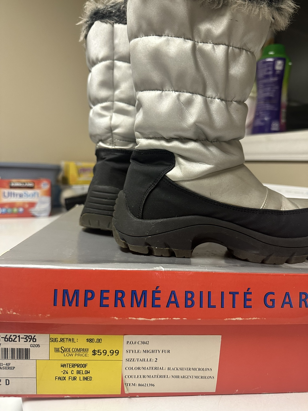 Winter waterproof kids boots size 2D for kids ages 3-4 years old girls, silver and black with faux fur inside, used only one winter. I’m good conditions. Bought at $60 plus tax