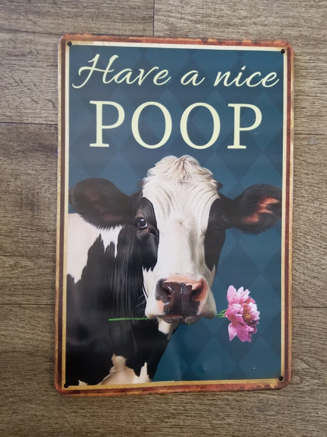 A funny sign with a cow and the text "Have a nice POOP" for a humorous touch to your space Brand new 8x12
