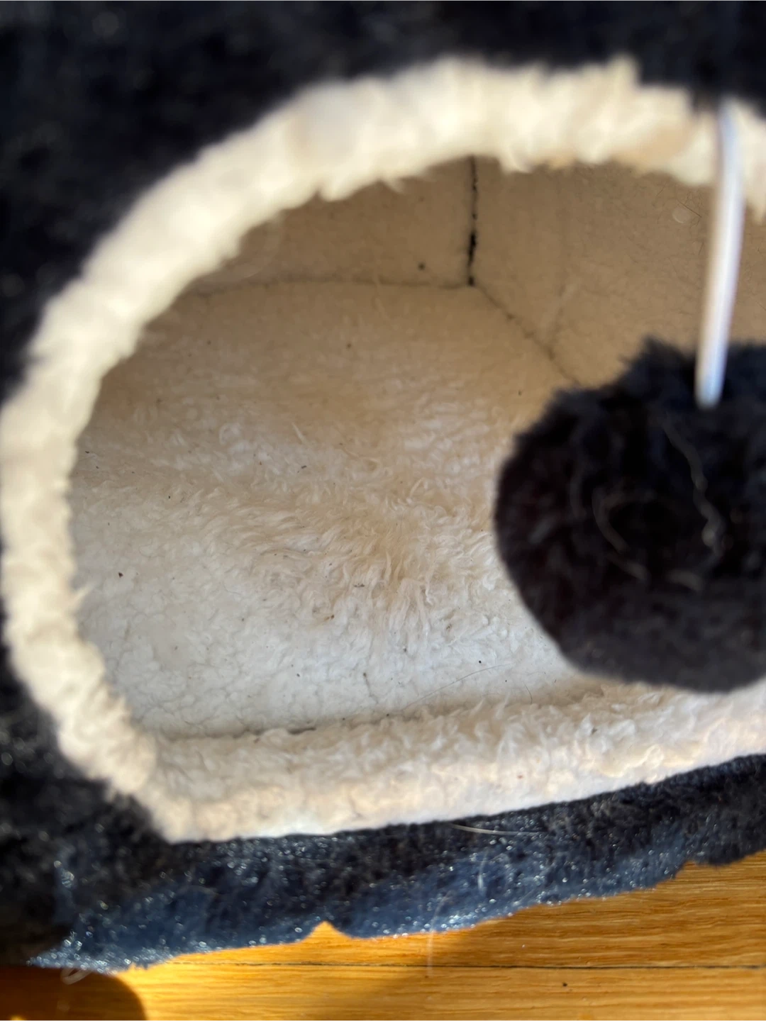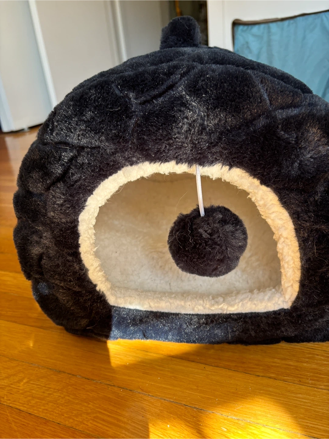I am selling this cozy cat bed cave. It's in great shape and ready for a new home. The inside is soft and plushy with a hanging ball toy for added fun. The bottom has a non-slip surface. My cat don’t really like it, he used it three times only so I’m selling it Retail price 55$ at Petsmart - Size: 16"L x 12"W x 11"H Pick up at Davenport & Dufferin or St. Clair W & Dufferin