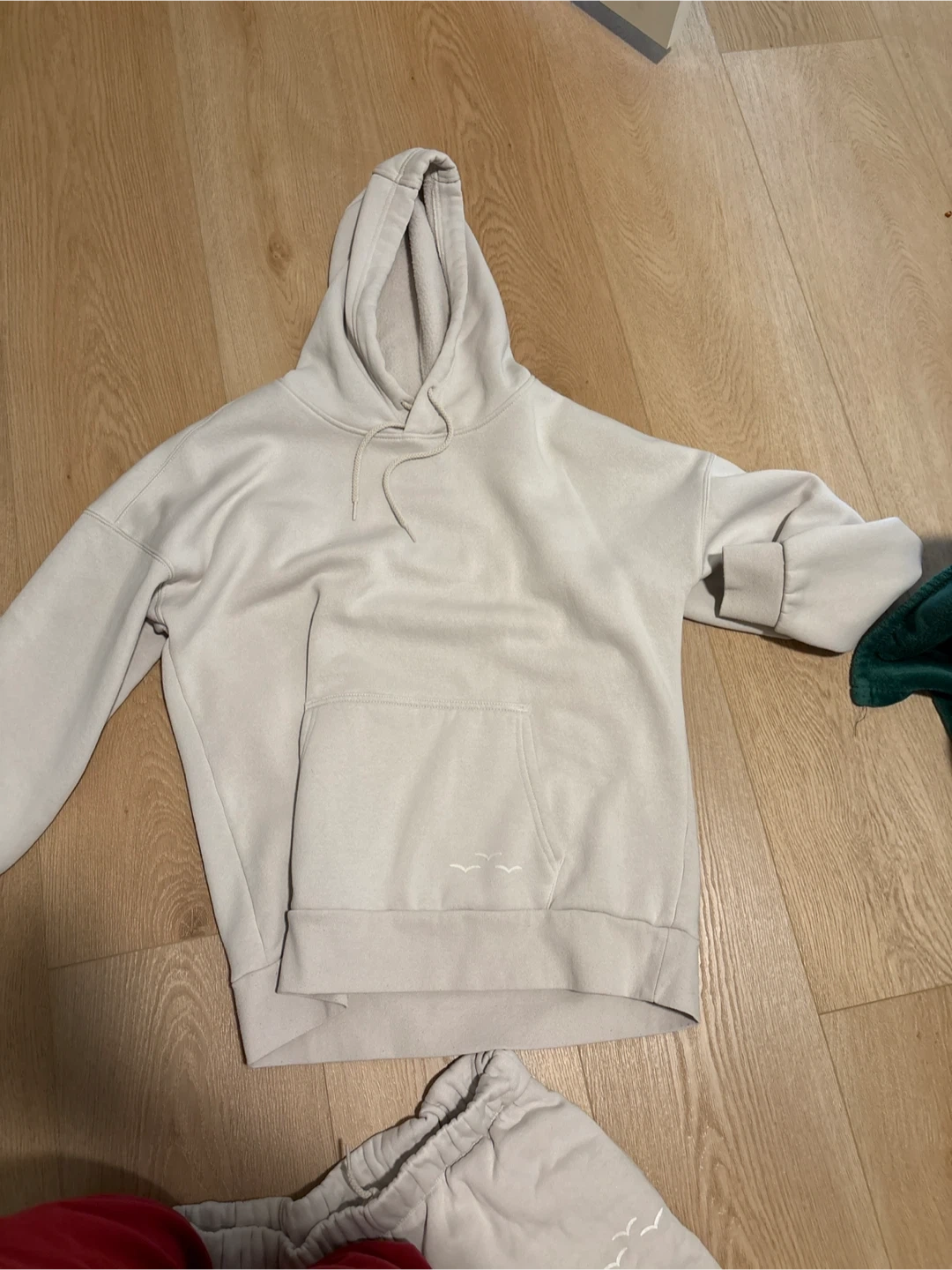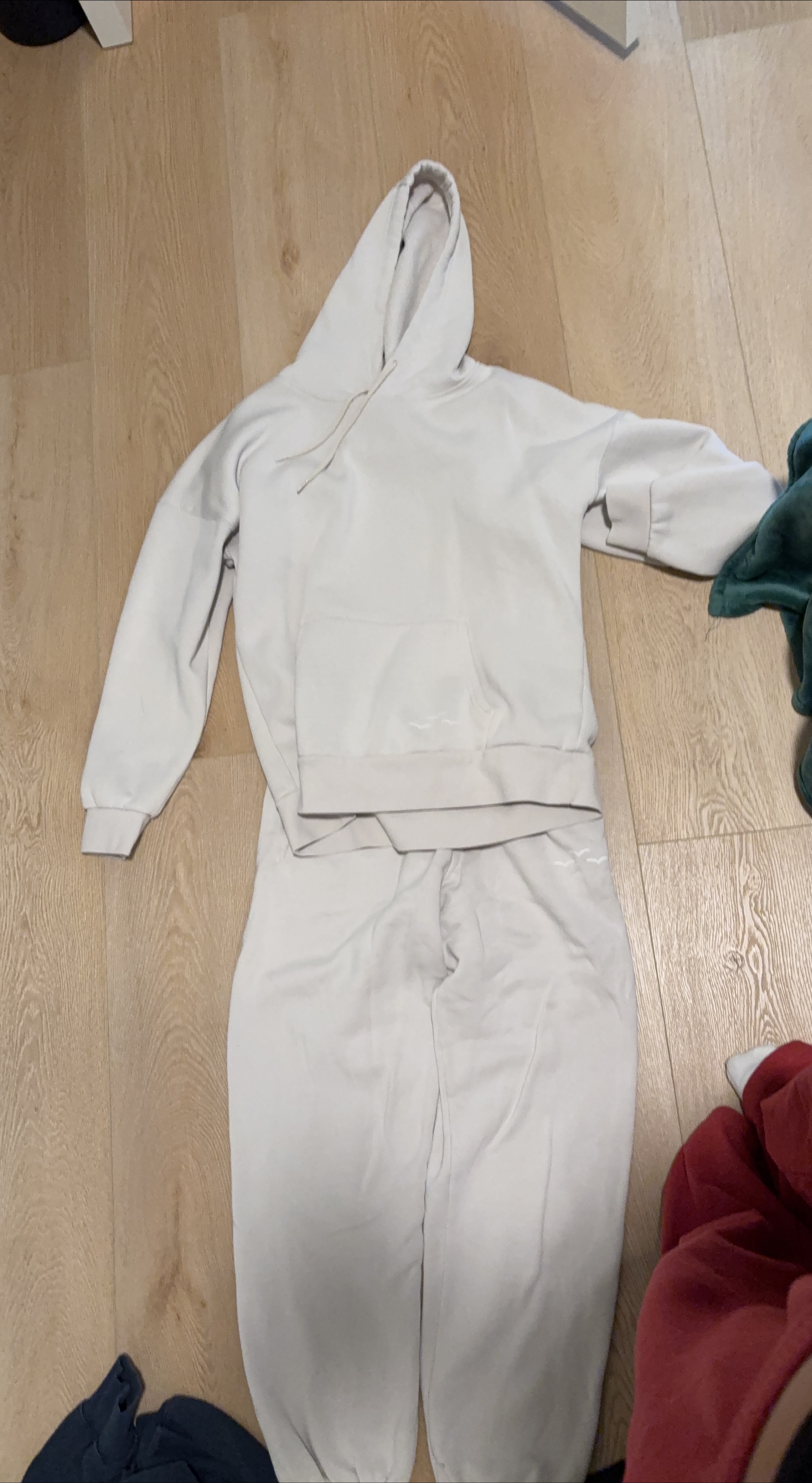 Selling a comfy Cozy Fleece set! It includes a hoodie and matching sweatpants, perfect for lounging or casual outings. The set is in a light beige colour and features a relaxed fit. It's made from super soft fleece material, so it’s extra cozy for the cooler weather!