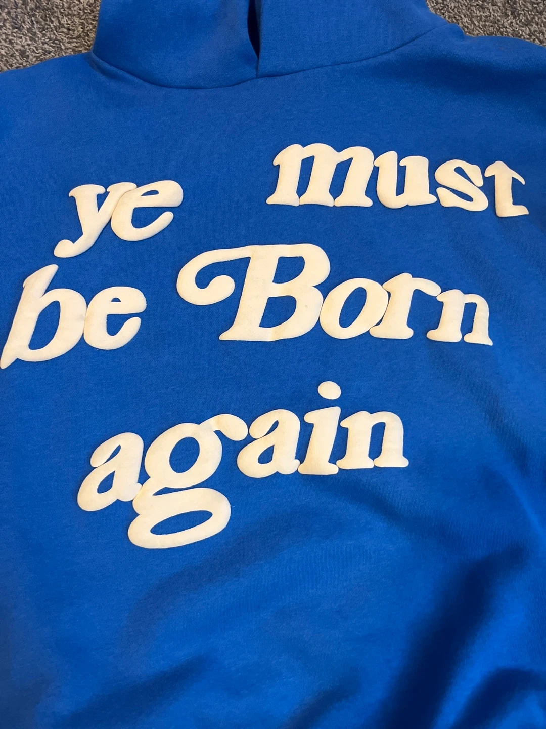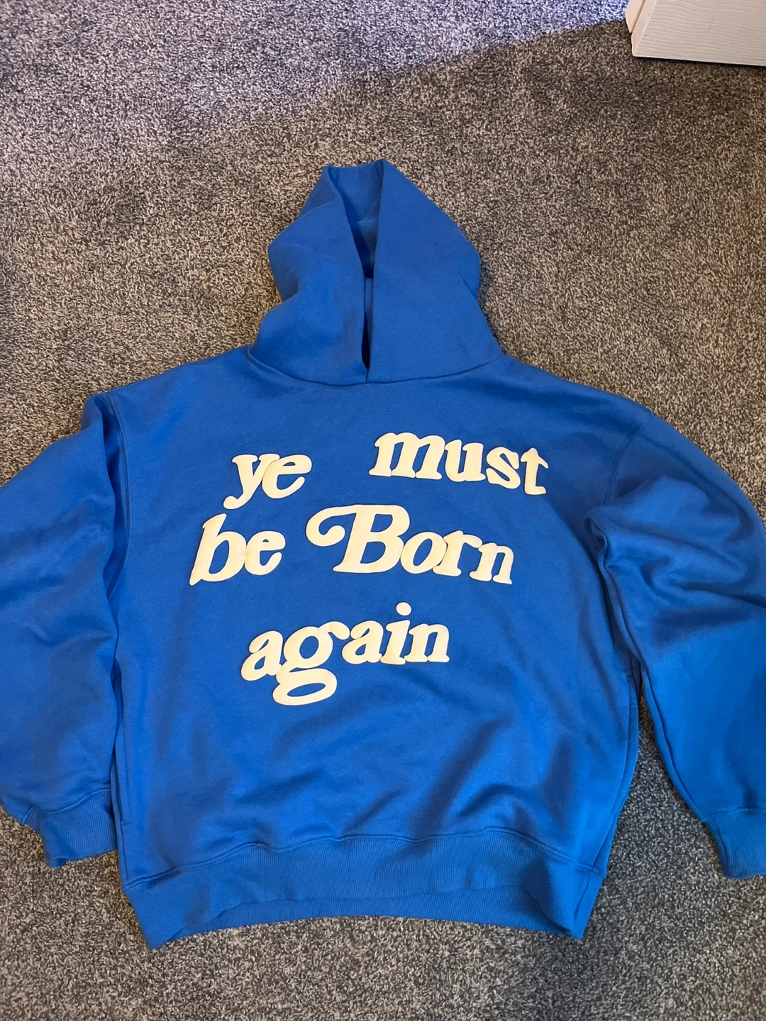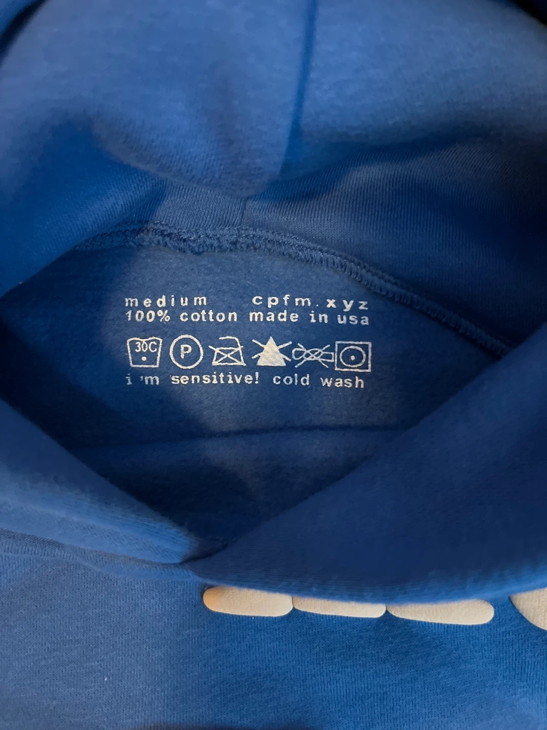 Selling a CPFM (Cactus Plant Flea Market) x Kid Cudi hoodie. It's the 'Ye Must Be Born Again' design in a vibrant blue. The size is medium and it's made of 100% cotton. It's in great condition and ready for a new home! Just a heads up, it's 'i'm sensitive! cold wash. It’s sized medium but is oversized!