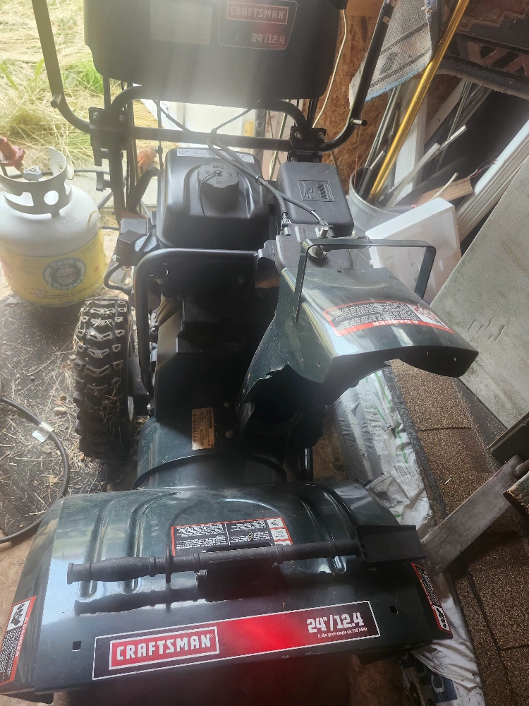 Selling a Craftsman 24" 12.4 snowblower. electric start gas powered. has a cage for a weather cover. It's in brand new condition. zero hours. I don't need it, motivated to sell. Great for clearing snow during the winter months I will accept reasonable offers, make me one ๐