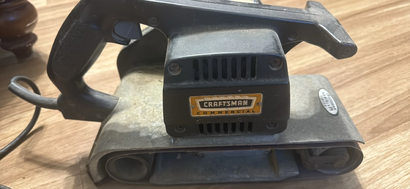 Vintage Craftsman Commercial belt sander. Shows wear from use. Includes power cord. Great for woodworking projects.