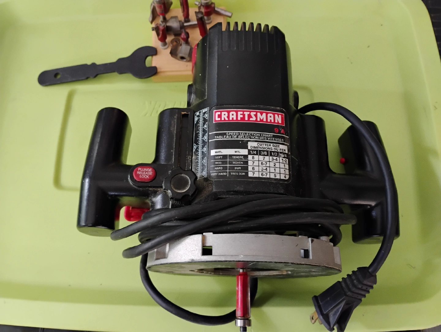 Selling a Craftsman Plunge Router, 9A. Great for various woodworking projects. Plus a few router bits to get started