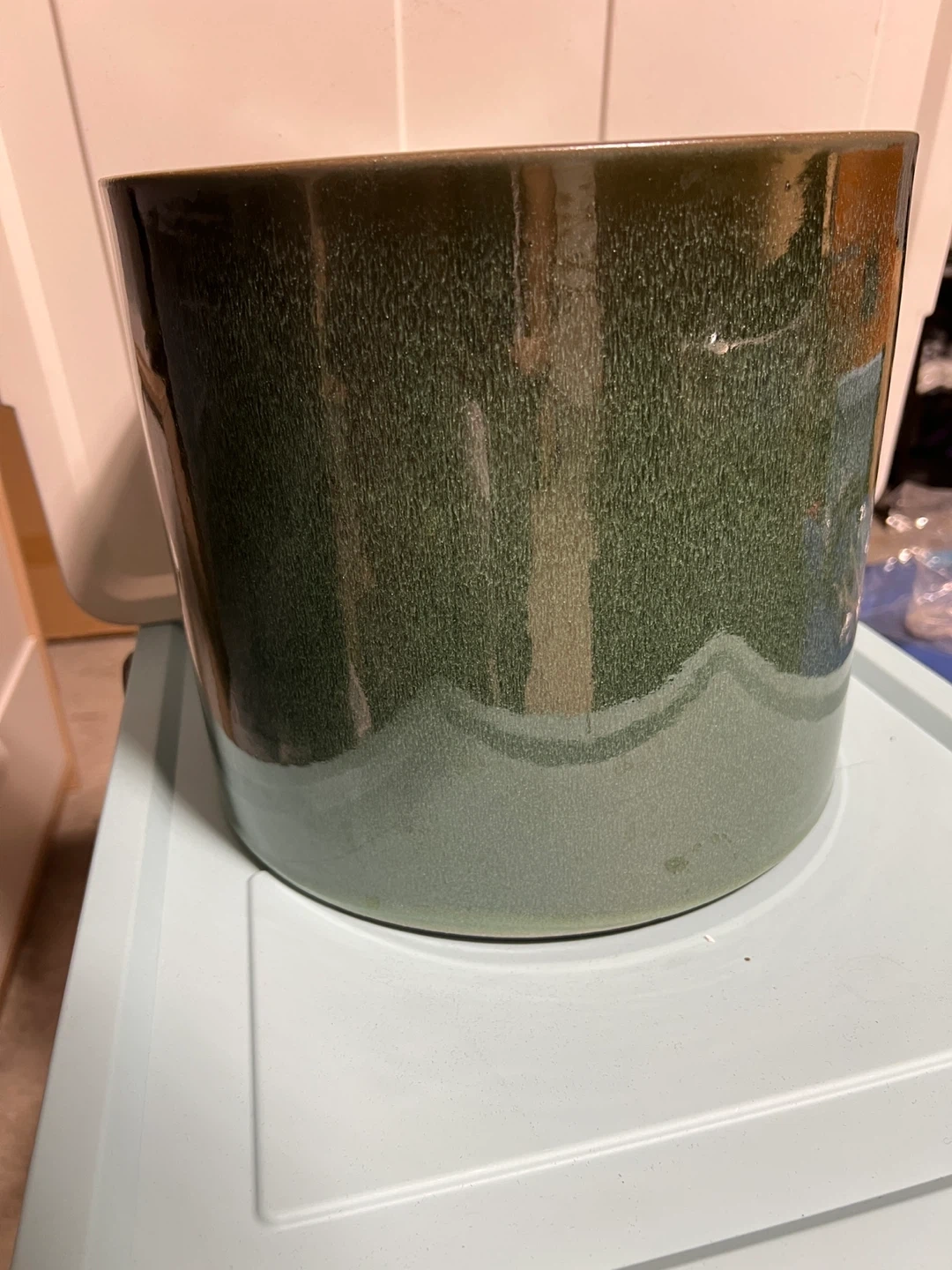 Selling a Crate & Barrel glazed green ceramic planter. It's in great condition and ready for your favourite plant! The bottom measures approximately 10 inches in diameter.