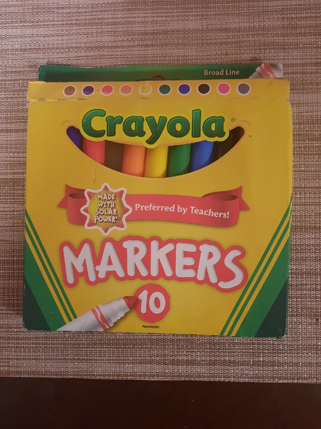 Selling a pack of Crayola Broad Line Markers! This is a 10 pack of non-toxic markers, preferred by teachers. Perfect for all sorts of arts and crafts