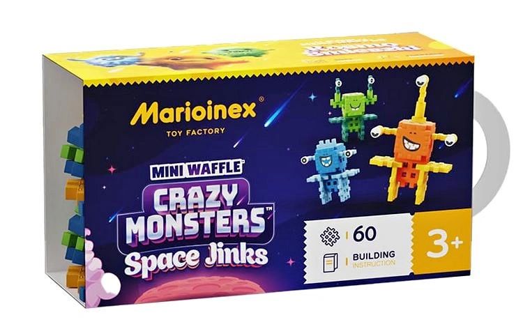CRAZY MONSTERS - Green, Orange, Blue - three mysterious figures have arrived on Earth from the depths of space to learn about human customs, language, and behavior. Help your new friends conduct research! Unleash your imagination, create your own monster stories, and explore the world together. Marioinex blocks combine constructive play with your little one's development. Get carried away by your limitless imagination together. PARAMETERS: * standard studded block size: 3.5x3.5cm * number of blocks: 60 * age: 3+ * packaging: 16x9x6.5cm * POLISH PRODUCT - solid, precise workmanship.