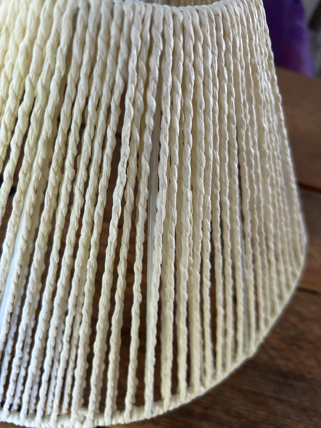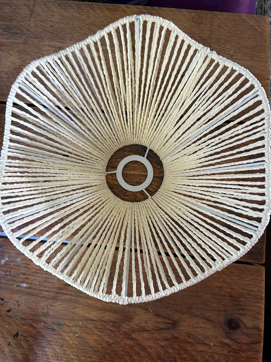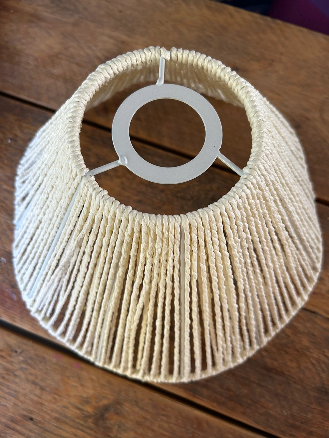 New, never used. This is a pretty lampshade that would work for either a table lamp or a hanging pendant. 30cm across, this is a nice size. Not too large but still makes a statement. It's a nice cream colour.