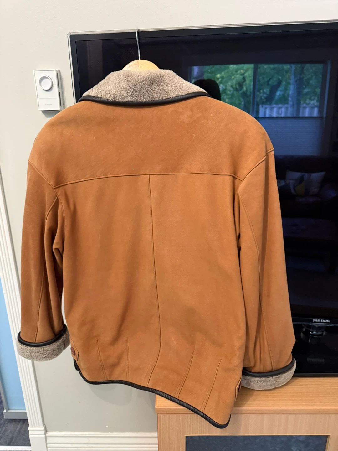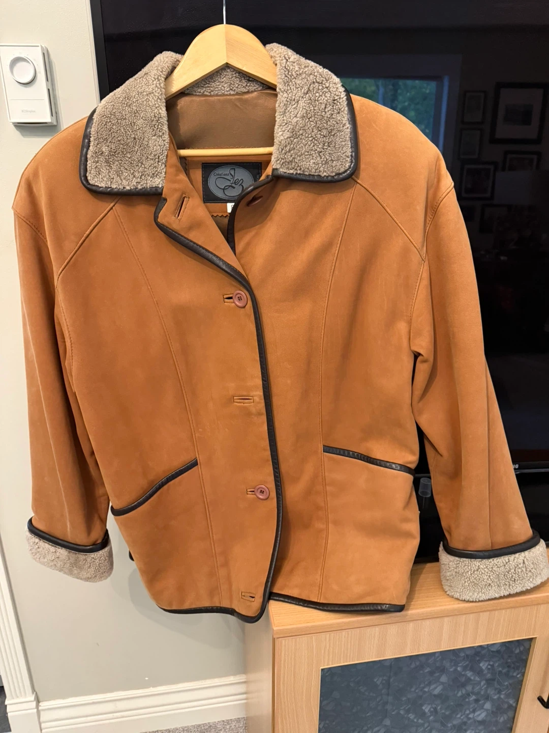 Selling a beautiful Creations Lez Montreal suede jacket in size 8. The jacket is in great condition and features a cozy shearling collar and cuffs. It's perfect for adding a touch of vintage charm to your wardrobe!