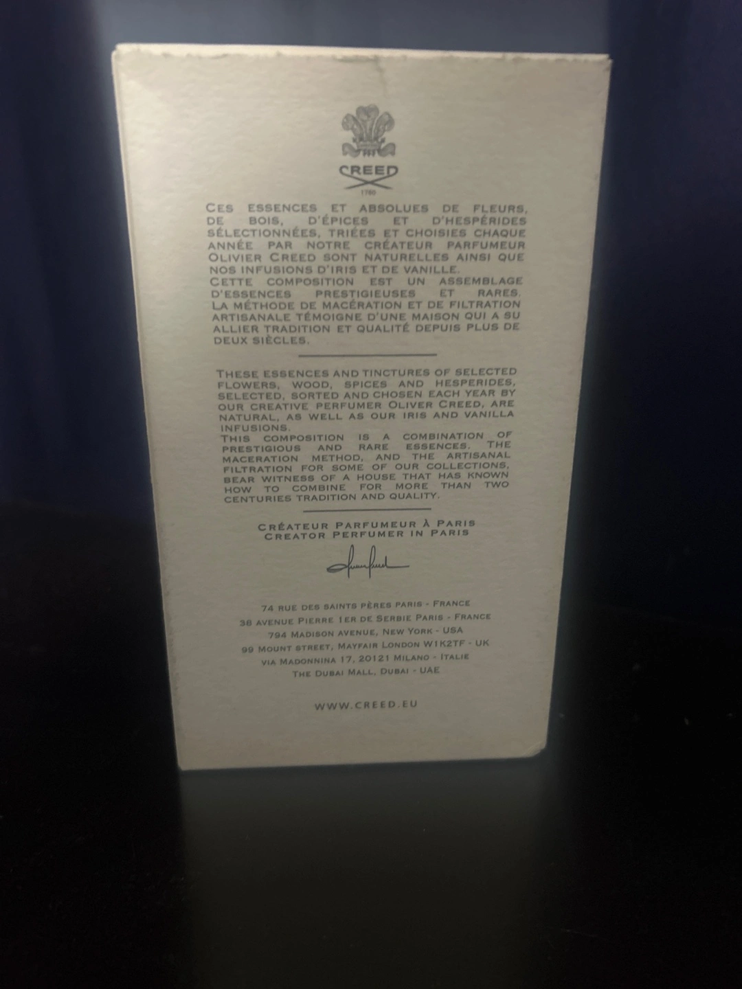 Selling a bottle of Creed Silver Mountain Water. It's a 100ml bottle of Eau de Parfum. The box is included. This is a fresh and clean fragrance, perfect for everyday wear!