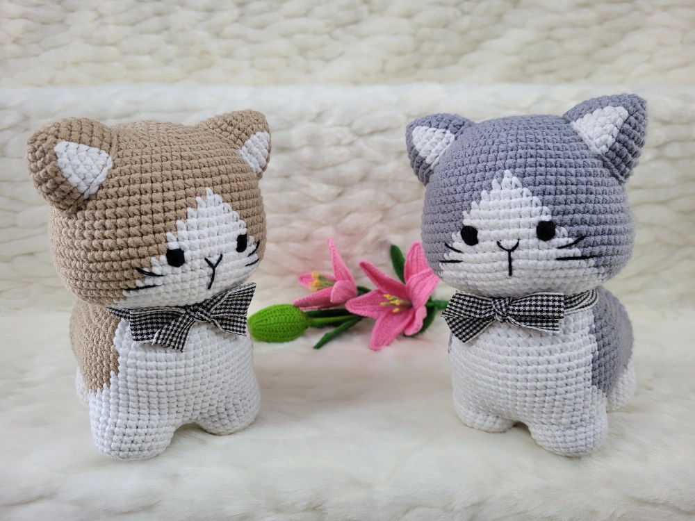These adorable crochet cat plushies are handmade with love! They each have a cute little bow tie and are perfect for adding a touch of whimsy to any room, also great idea gift for kid and your love. we can do custom