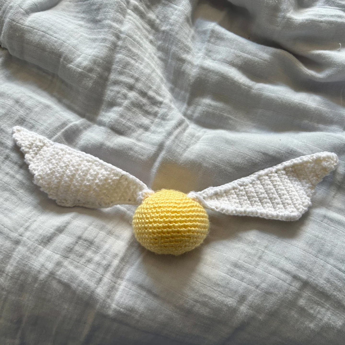 Selling a handmade crochet Golden Snitch! It's in great condition and would be perfect for any Harry Potter fan or as a unique decorative piece