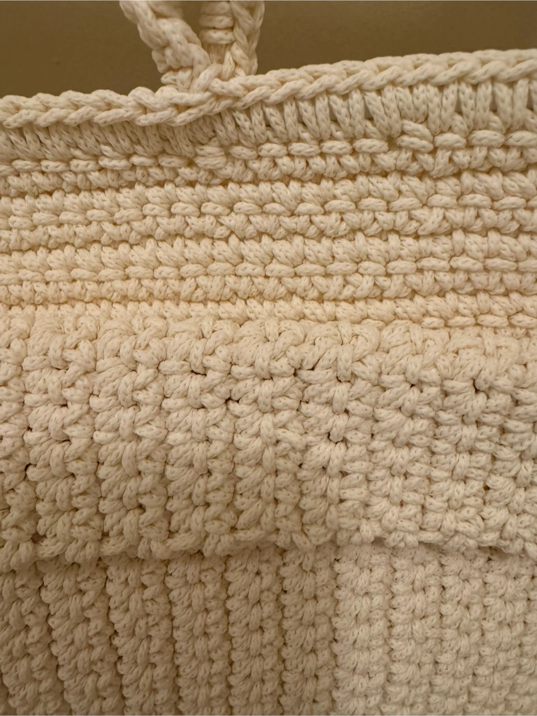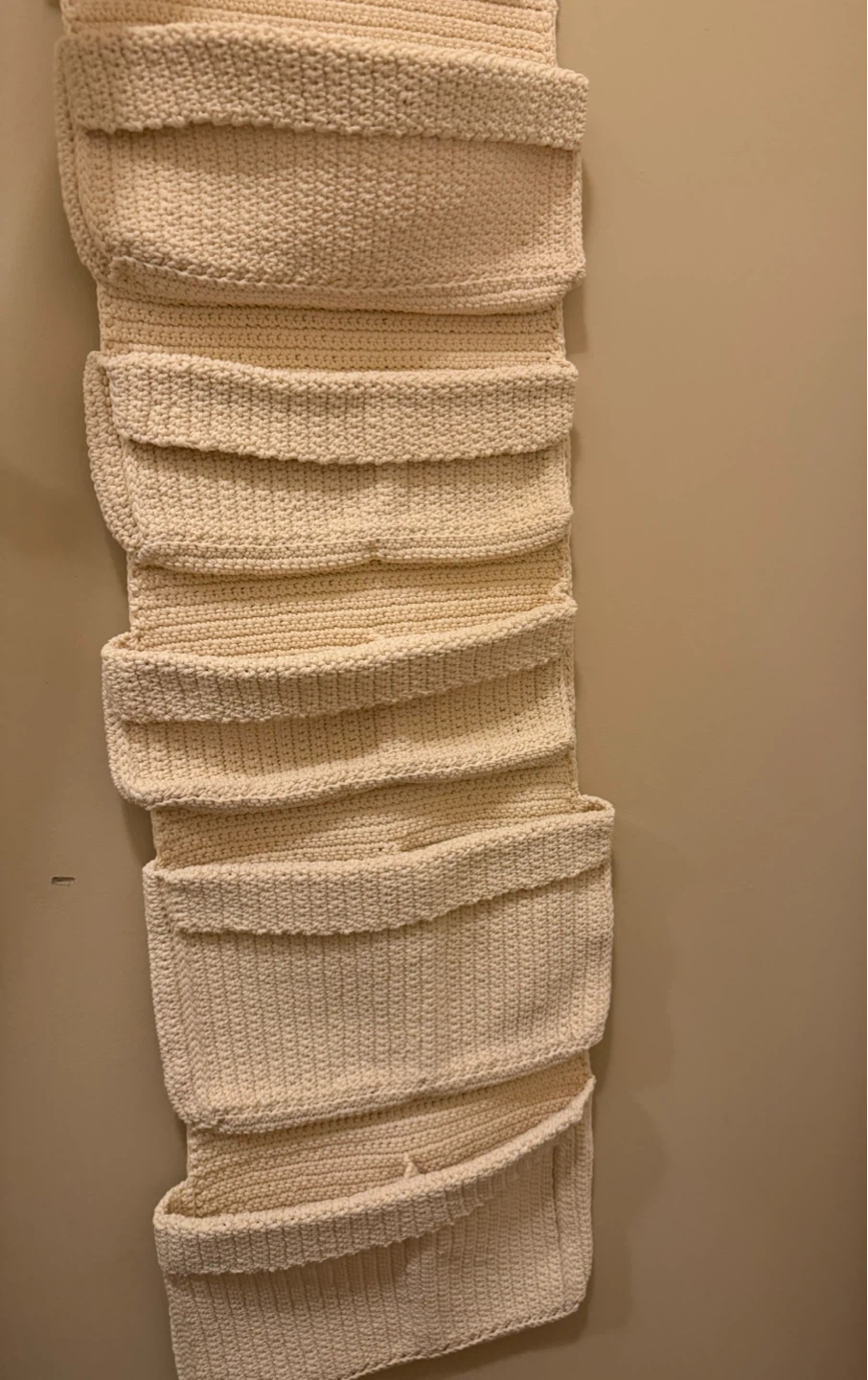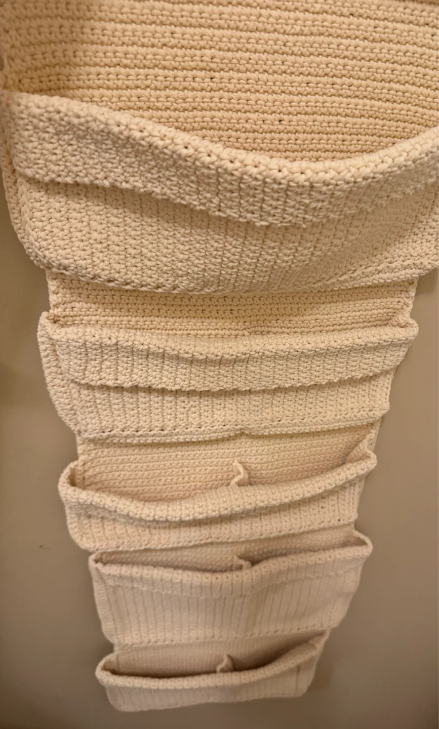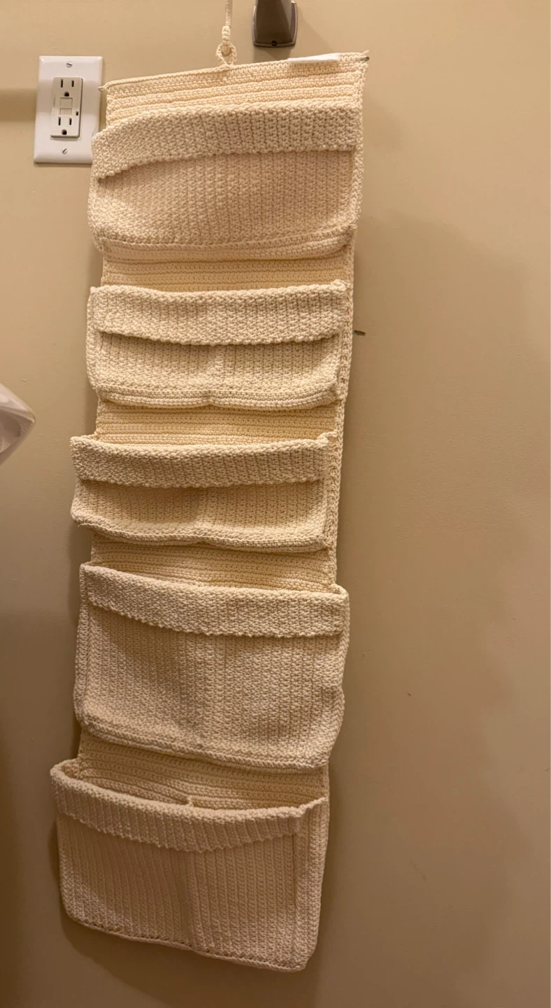 Looking to add some functional decor to your space? This crocheted hanging wall organizer is perfect! It's got multiple pockets to store all sorts of things, from mail to toiletries. The neutral colour will match any room, too