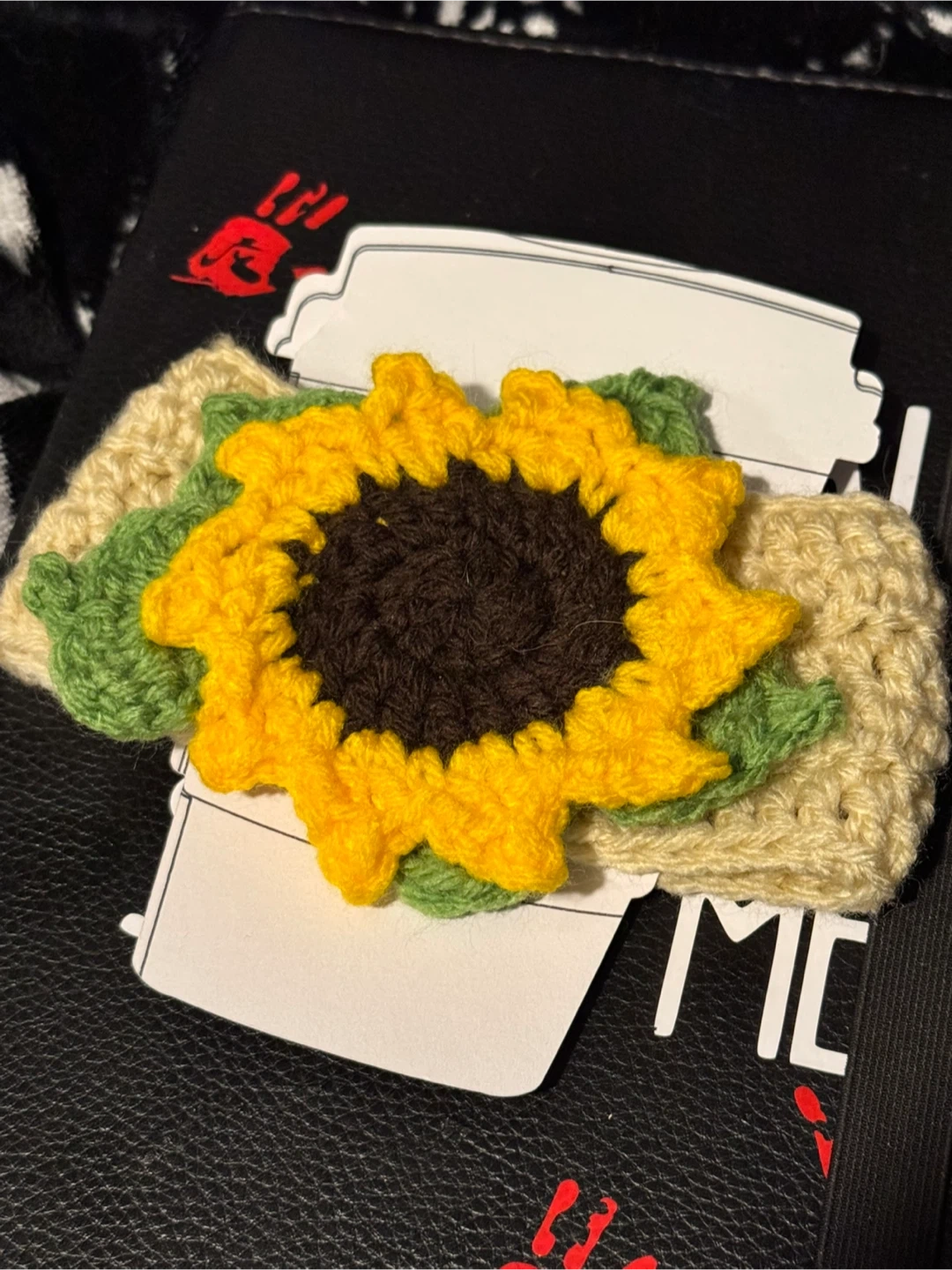 Super cute handmade crocheted sunflower cup cozy It's in great condition and ready to brighten up your day free