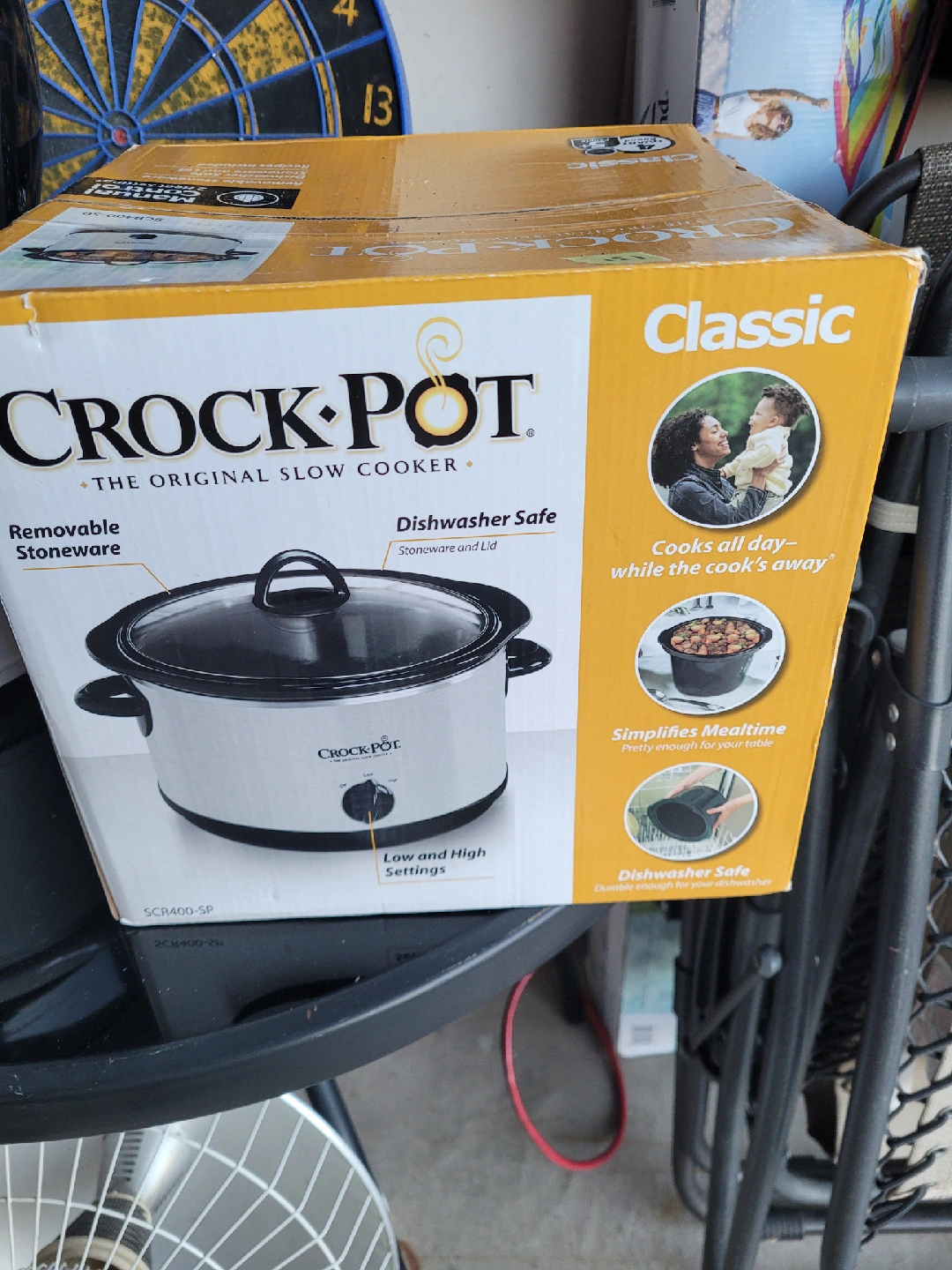 Selling a Crock-Pot Classic slow cooker. It's a 4-quart round model, perfect for 5+ people. The stoneware is removable and dishwasher safe, making cleanup a breeze. It simplifies mealtime and is pretty enough for your table. It has low and high settings.