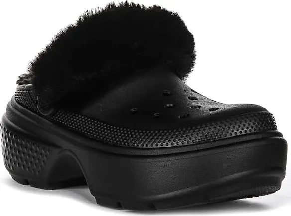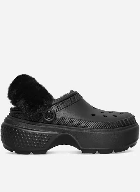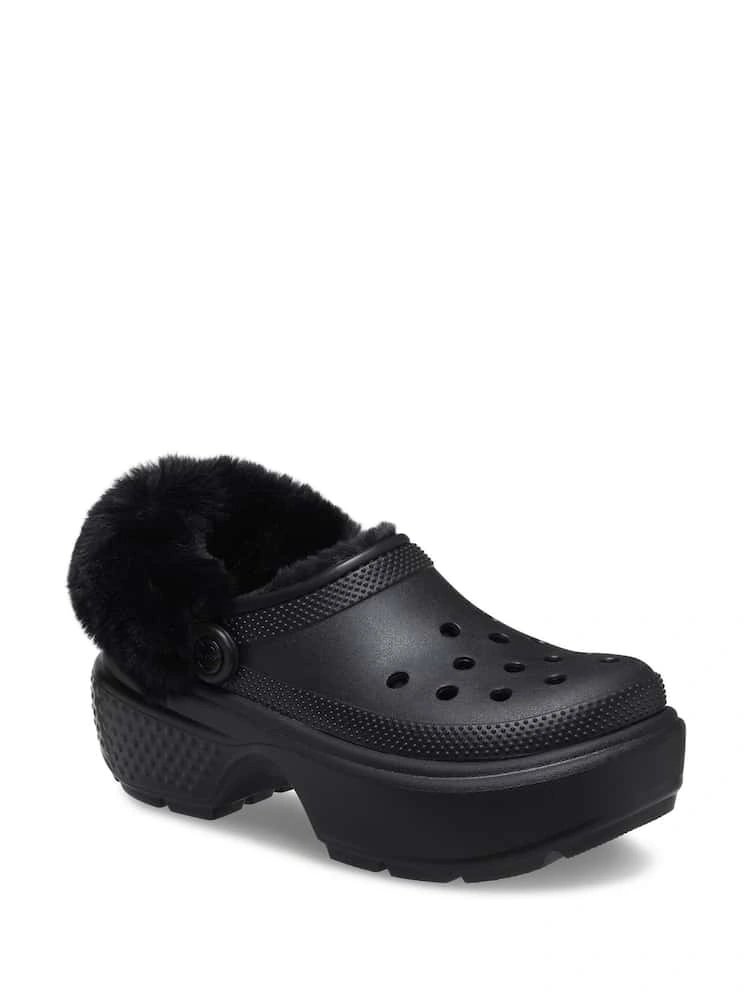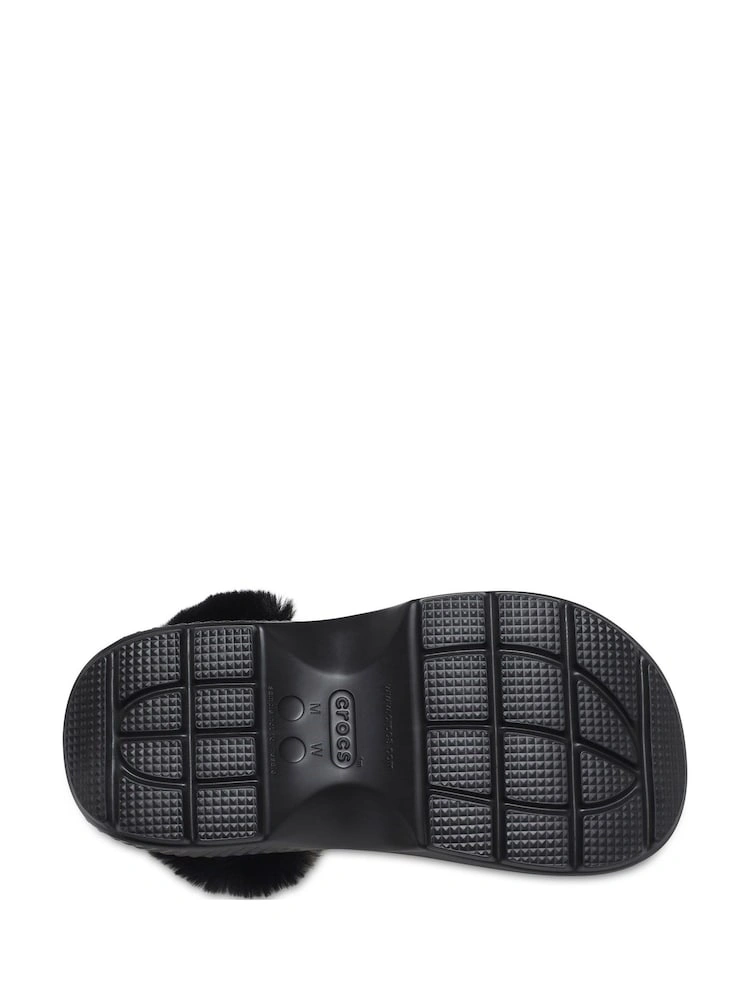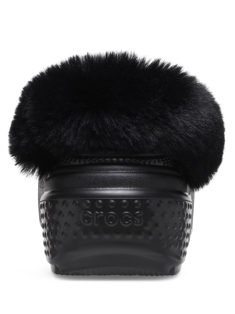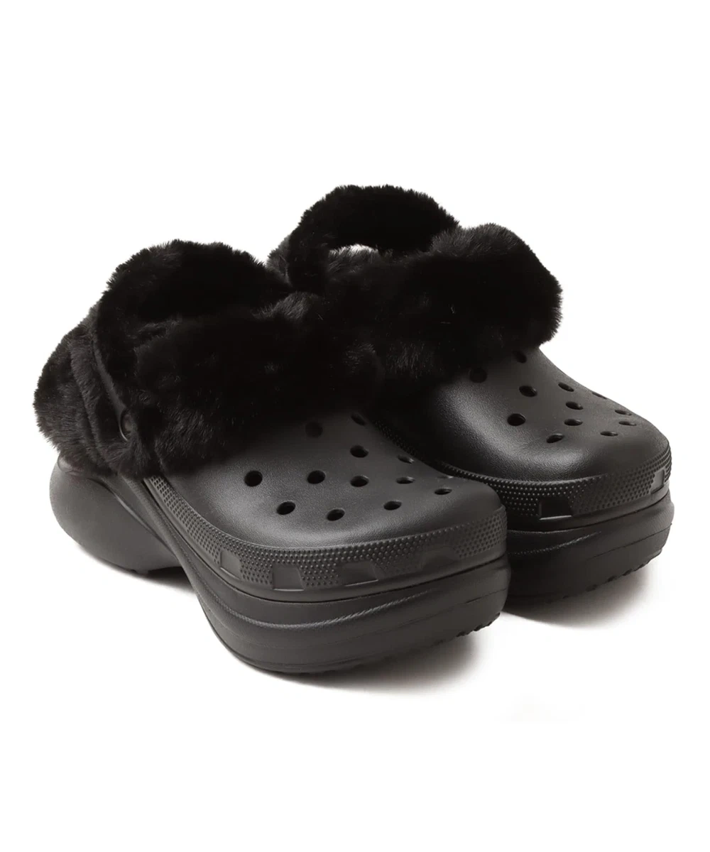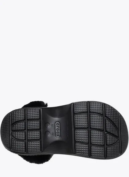 Crocs Classic Mammoth Luxe Platform Clogs! These black platform clogs are super comfy and feature a cozy faux fur lining to keep your feet warm and snug.