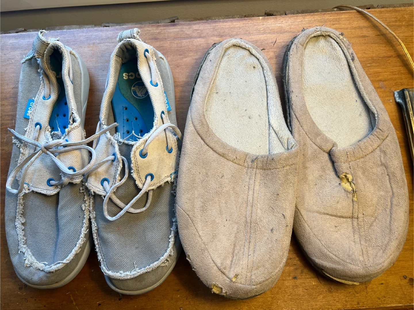 Free pair of Crocs boat shoes and a pair of slippers. Both used. Size 10
