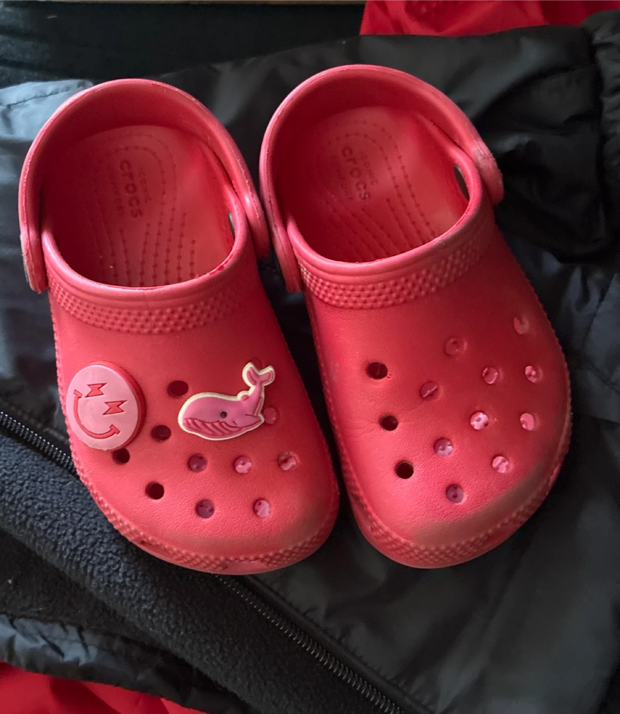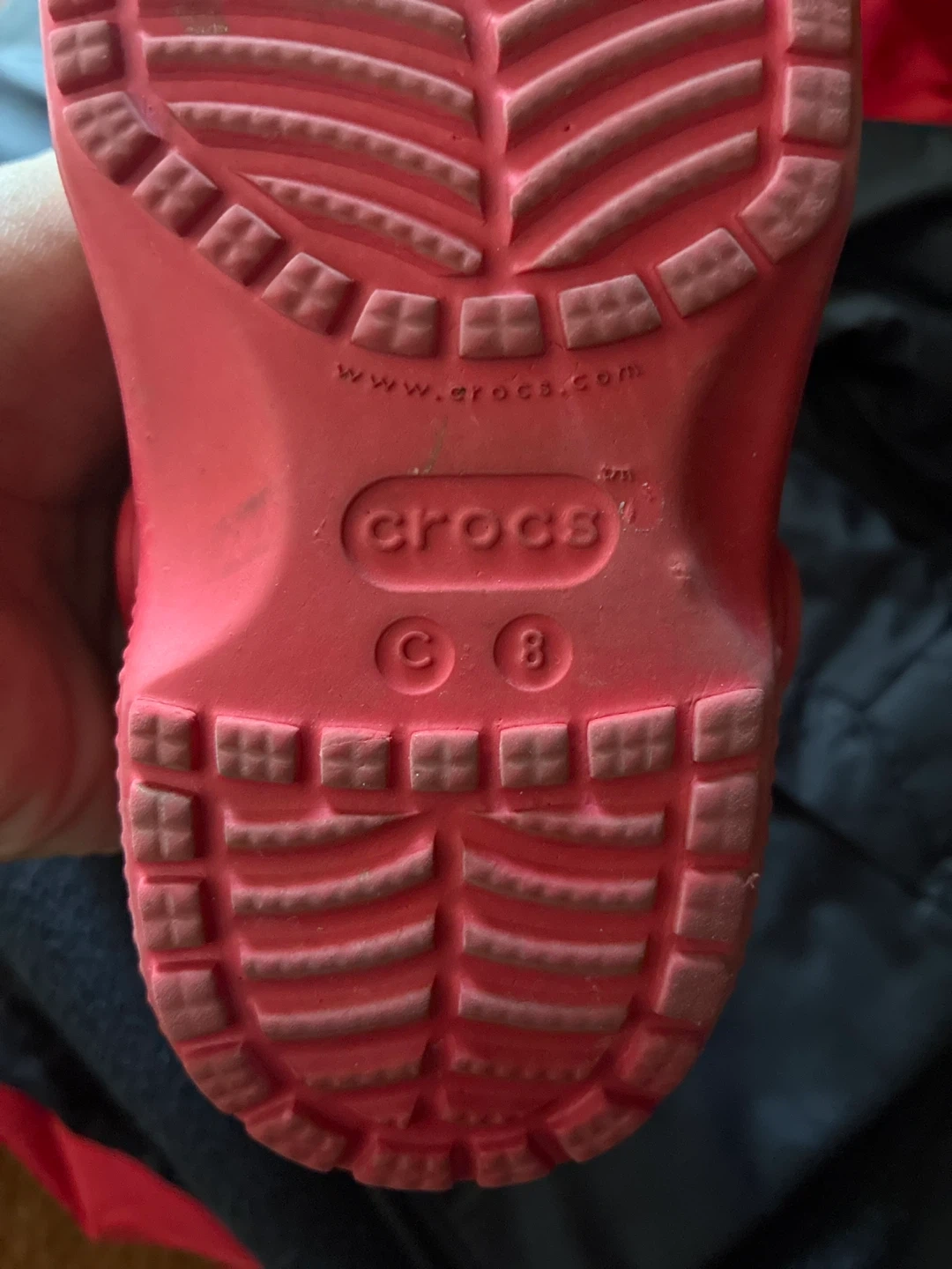 Selling a pair of Crocs kids clogs in size C8! They're a cute pink colour and have some fun charms attached. Perfect for your little one to wear around the house or outside I will clean them up before purchase! PU Kipling and Lakeshore