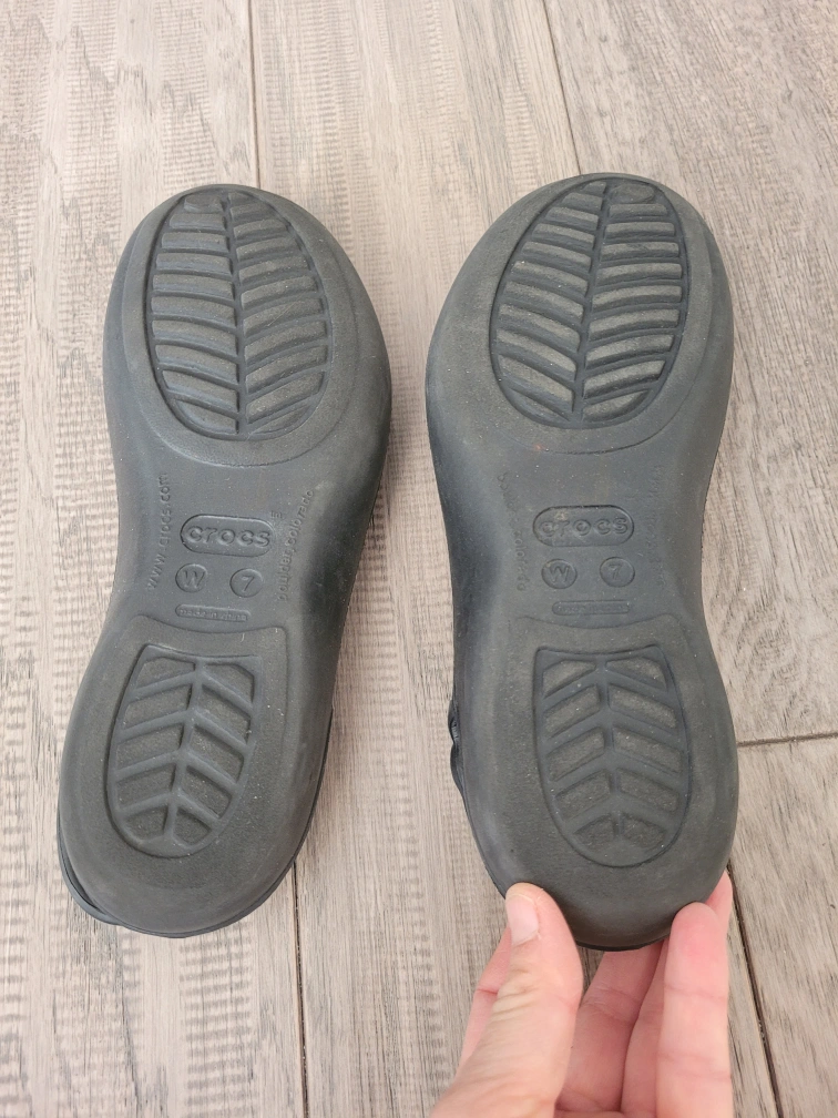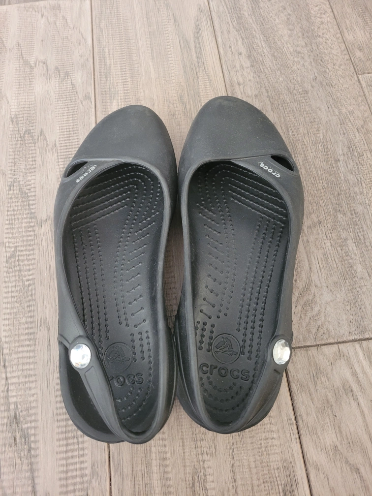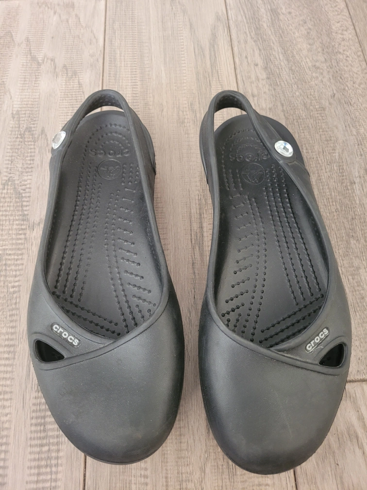 Crocs Women's Size 7 Black Slingback Flats Selling a pair of Crocs slingback flats in women's size 7. They're black and in good condition. Perfect for casual wear or a day at the beach!