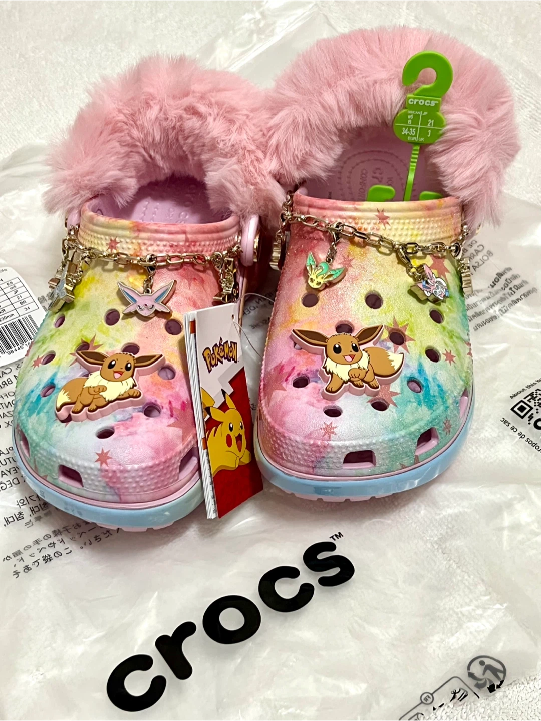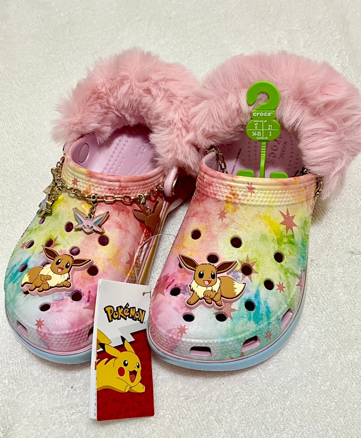 Super cute Crocs x Pokemon Eevee lined clogs. These are in excellent condition and feature fun Pokemon charms and a soft, fluffy lining. Perfect for any Pokemon fan! - just opened from packaging, not used. Doesn’t fit