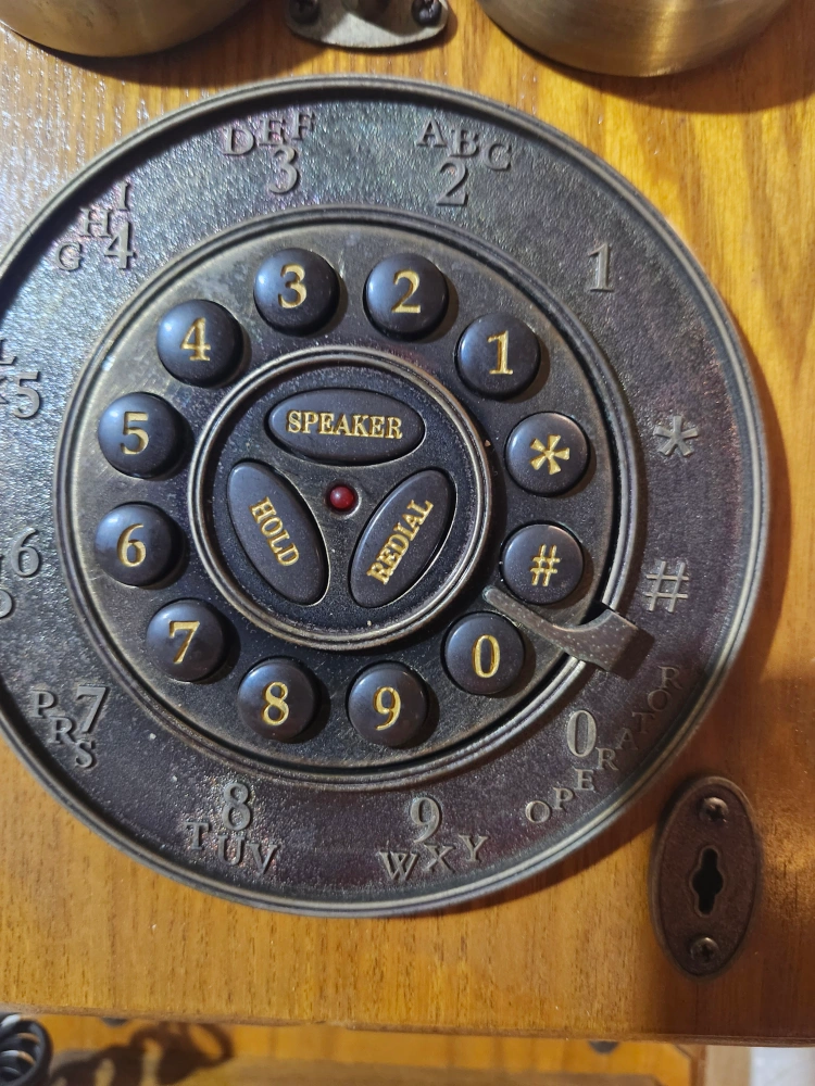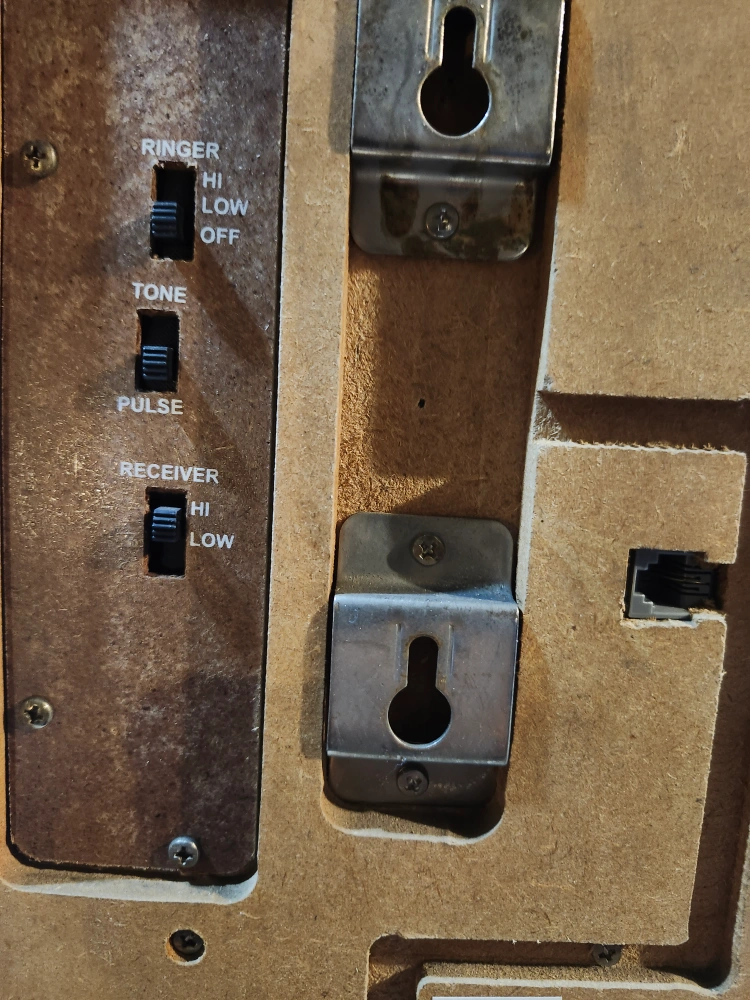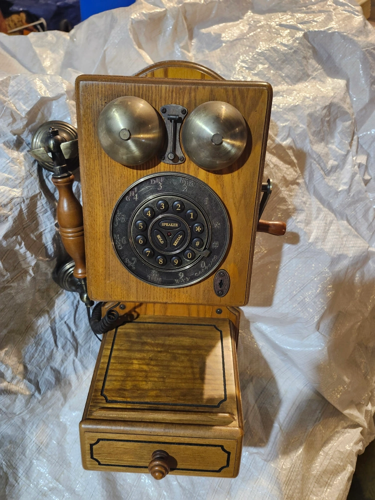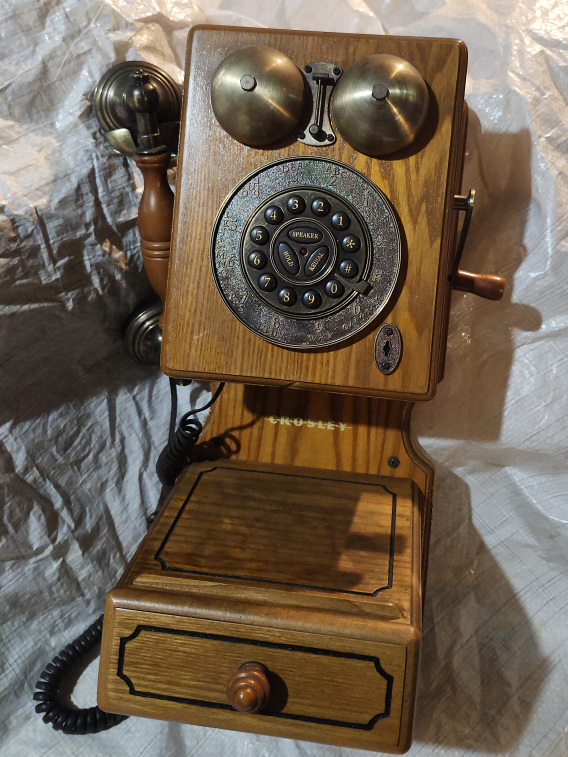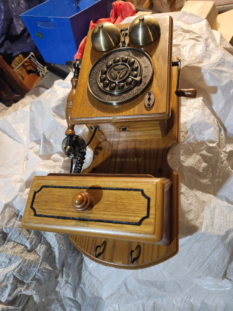 Selling a Crosley CR59-BC Oak Wall Phone! It's in great shape and would be a charming addition to any home. It features a rotary dial and ringer volume control. It has settings for ringer (Hi, Low, Off), tone, and receiver (Hi, Low).