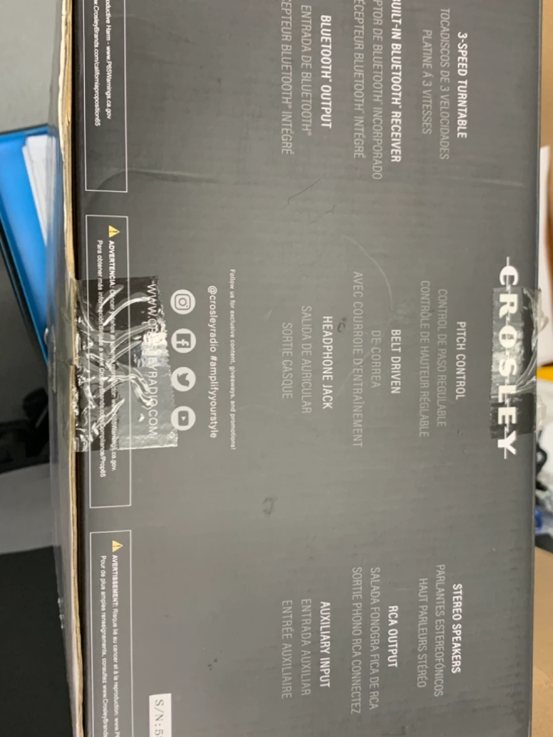 Selling a Crosley Voyager 3-speed turntable. It has a built-in Bluetooth receiver and belt drive. It also features RCA and auxiliary inputs, as well as a headphone jack. Comes with stereo speakers. The box is included!