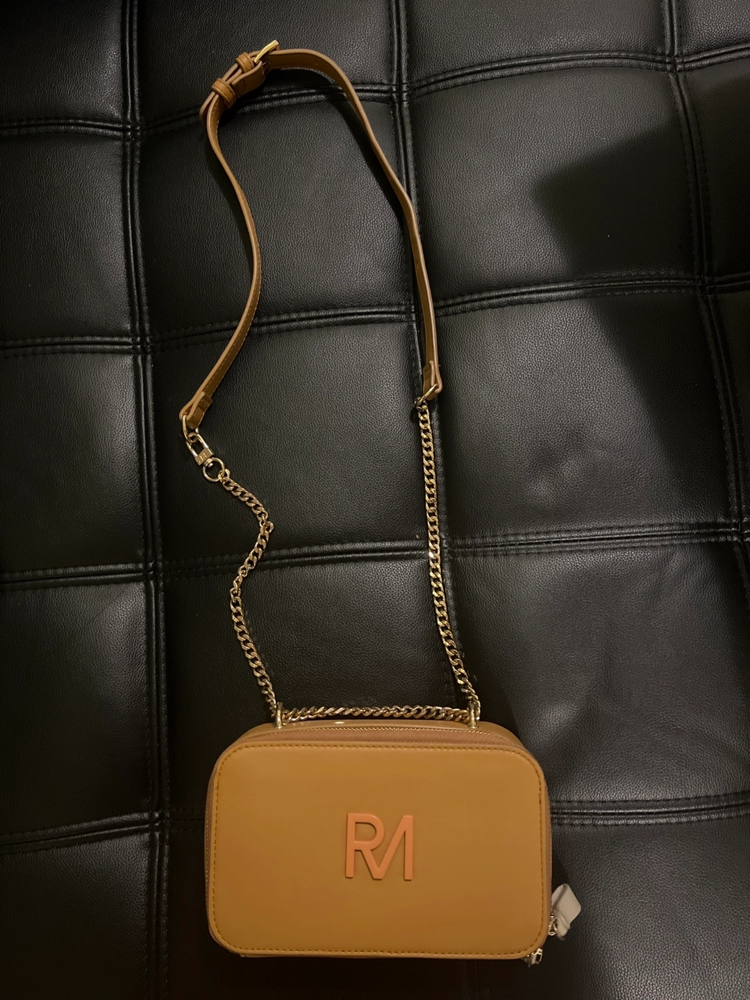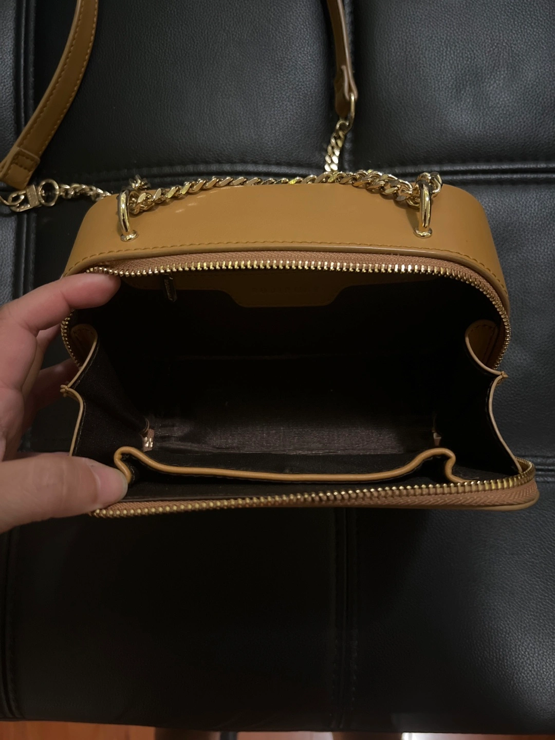 Selling a cute crossbody camera bag! It's in great condition and perfect for carrying your essentials. The colour is a lovely tan, and it comes with a chain strap. It's a stylish and practical little bag