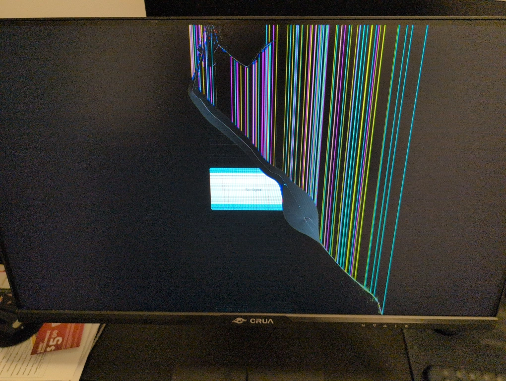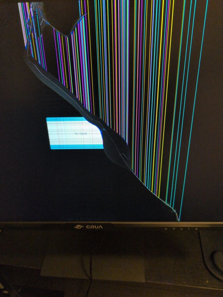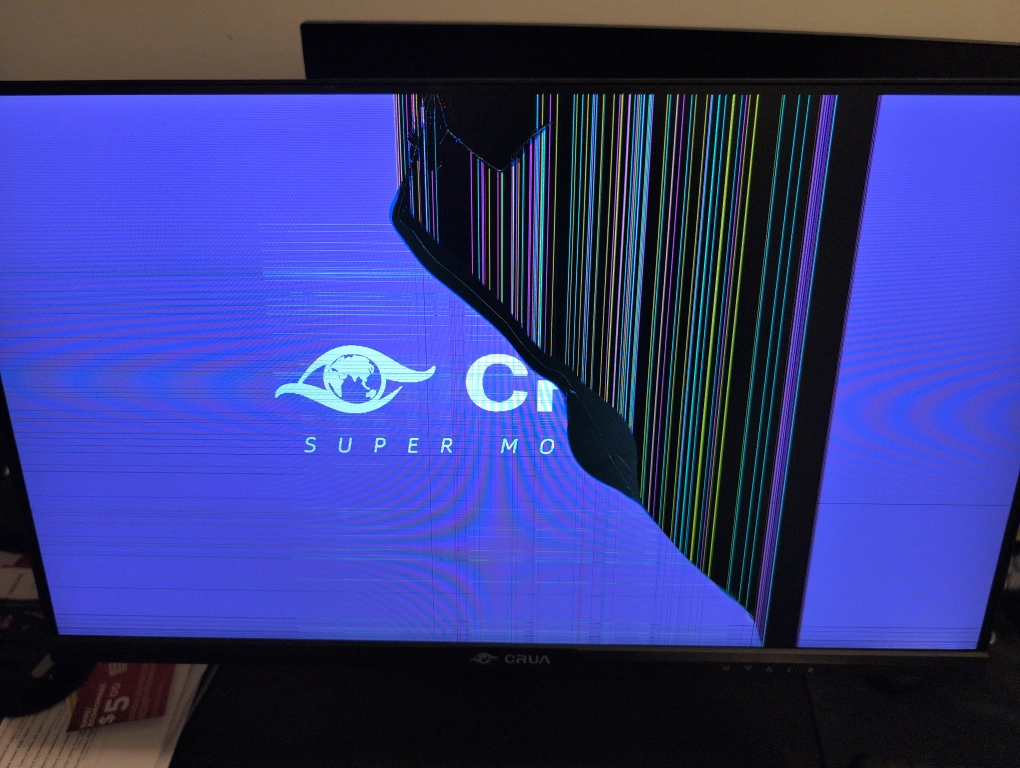 Selling a CRUA monitor. Please note that the screen is damaged as shown in the pictures... if you can correct it maybe
