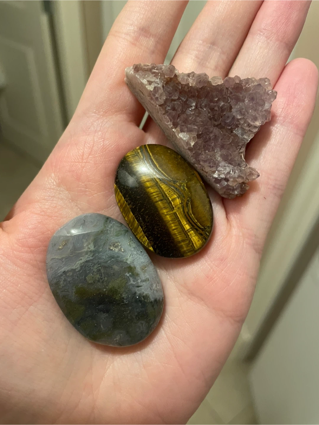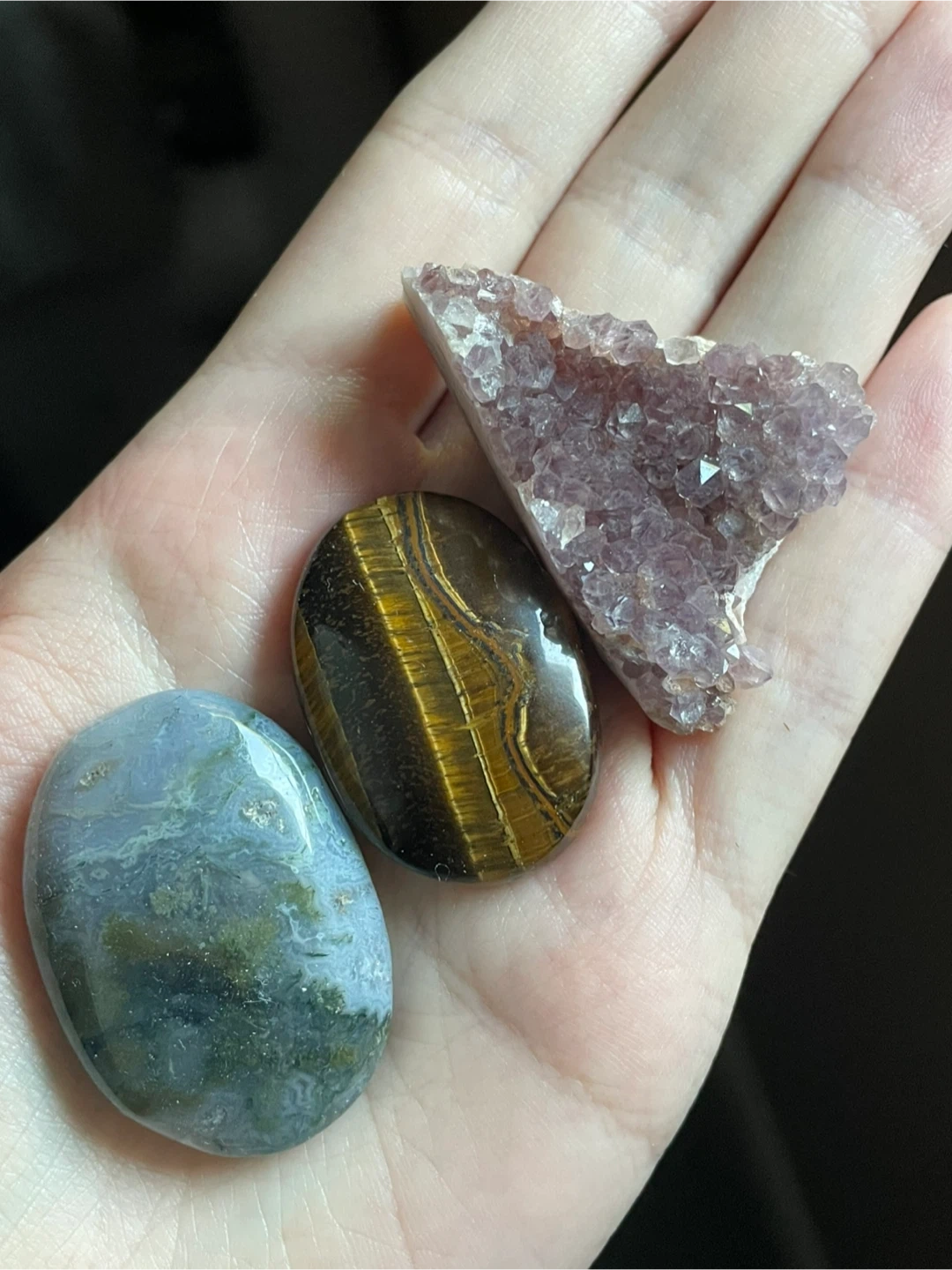 Amethyst, Tigers Eye and Moss agate. All 3 for $10 Would also trade for a $10 Starbucks GC! Pickup near Wesburn park, burnaby. Cash only please ππ»