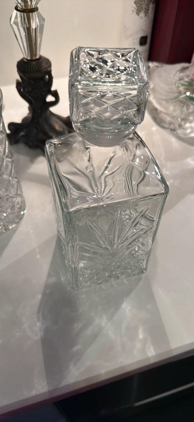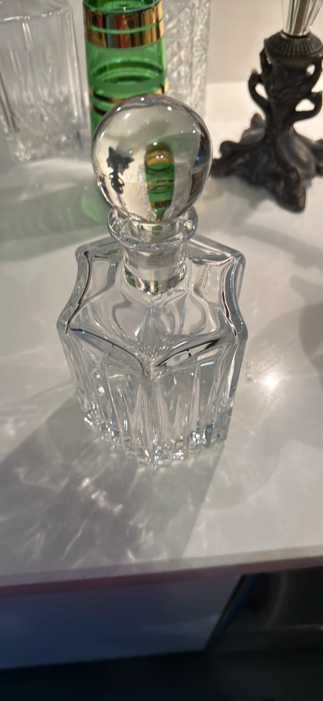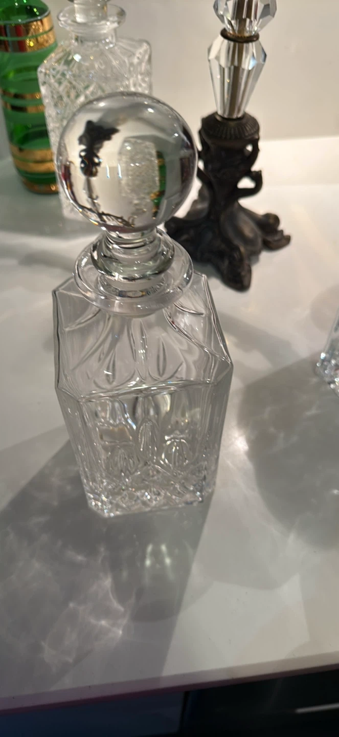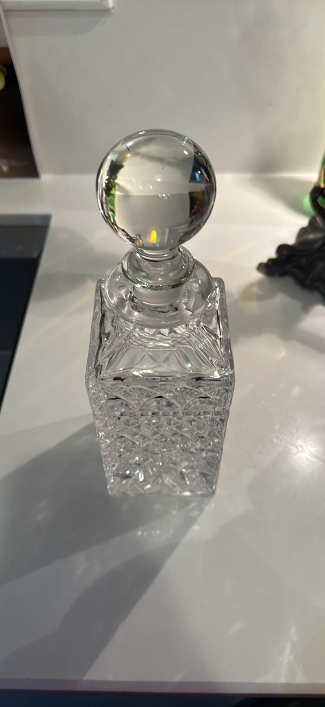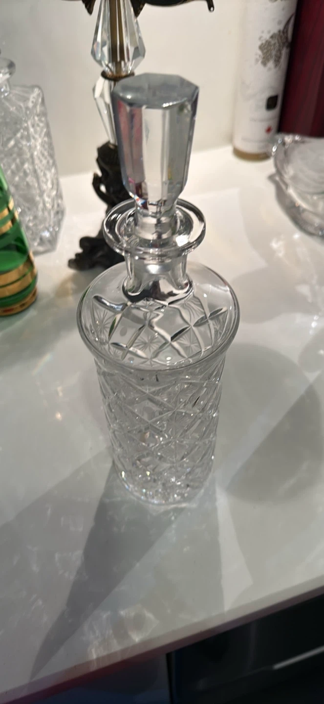 Selling a beautiful crystal decanter. It's in great condition and would look lovely in any home. The intricate design catches the light beautifully, adding a touch of elegance to your space. Perfect for serving your favourite spirits or as a decorative piece!