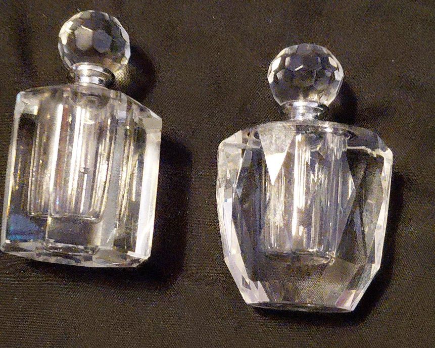 Selling a set of two beautiful crystal perfume bottles. They are in great condition and would look lovely on any vanity or dresser. The crystal design catches the light beautifully!