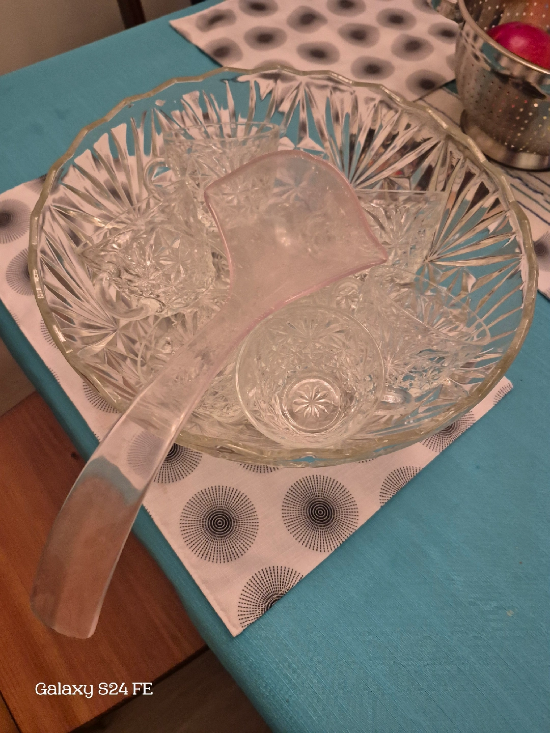 Lovely crystal punch bowl set! Includes a large punch bowl, several small cups, and a ladle. Perfect for parties or special occasions. !!NEED GONE ASAP!!