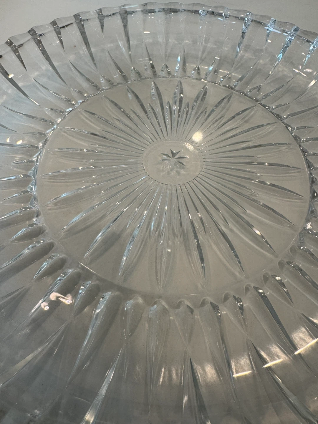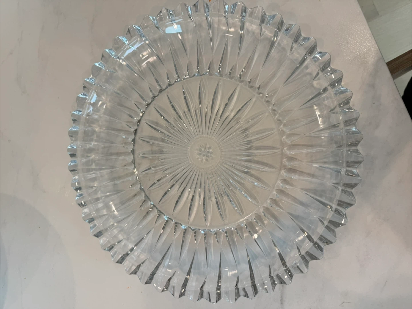 Beautiful crystal serving tray in excellent, like new condition. No chips, no damages, and only hand washed. The inner circumference is 13 inches. Asking $70