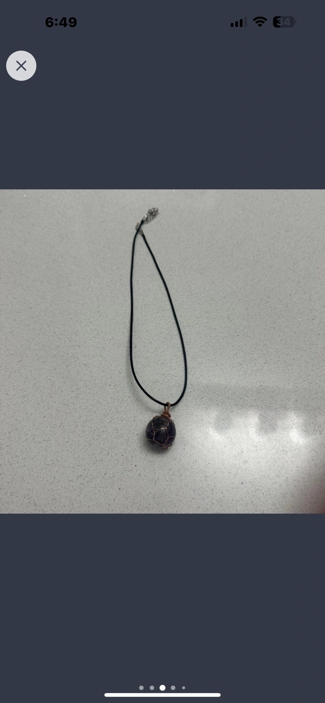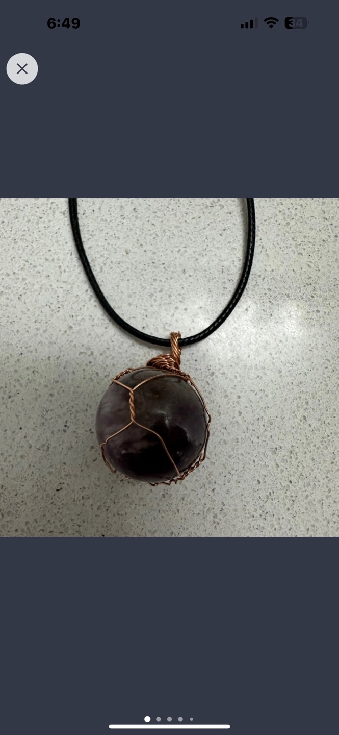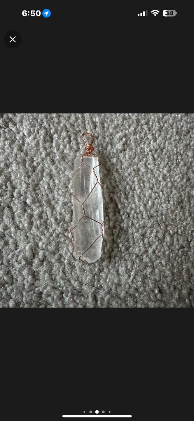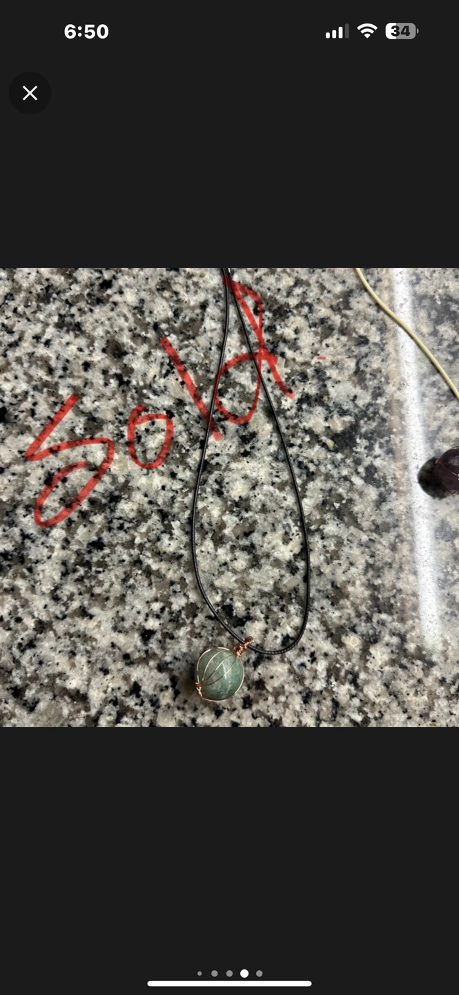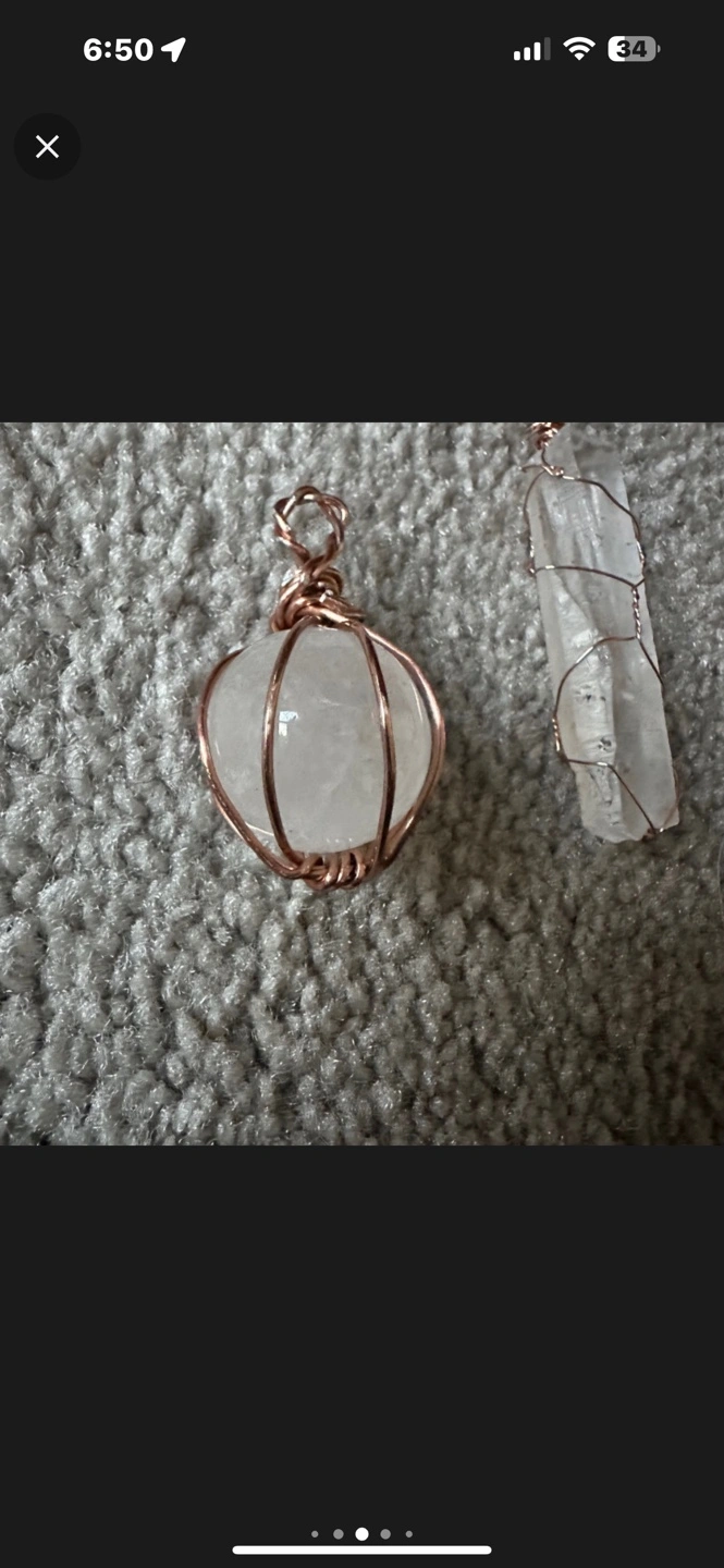 unique pendants featuring various crystals, each wrapped in copper wire. Includes clear quartz, green aventurine, amethyst, and more. They come with necklace cords different colours