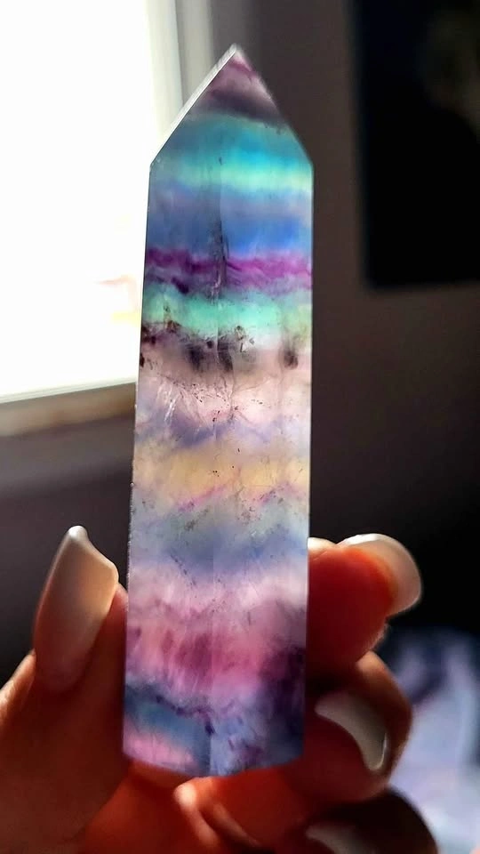 There are too many to list one by one. Please ask if you are wanting one specific tower as these are all different prices due to size and weight. There are no points or towers in fluorite that are under $30. The price starts at $30 per tower and is priced by size/weight/quality. These are also FCFS. Beautiful rare blue fluorite tower, green towers, rainbow towers etc I have a lot that are not listed so if you are wanting a specific color please ask. Short videos available for viewing if needed please ask. Pick up is North East Edmonton any weekday after 1pm daily. Weekend pick ups can be arranged as needed. I accept etransfer or cash only. I do not hold any items without payment in full and a scheduled pick up date and time set. Prices set are firm and non negotiable. I do not give discounts as I am not a store. This is for sale only. No trades thanks.