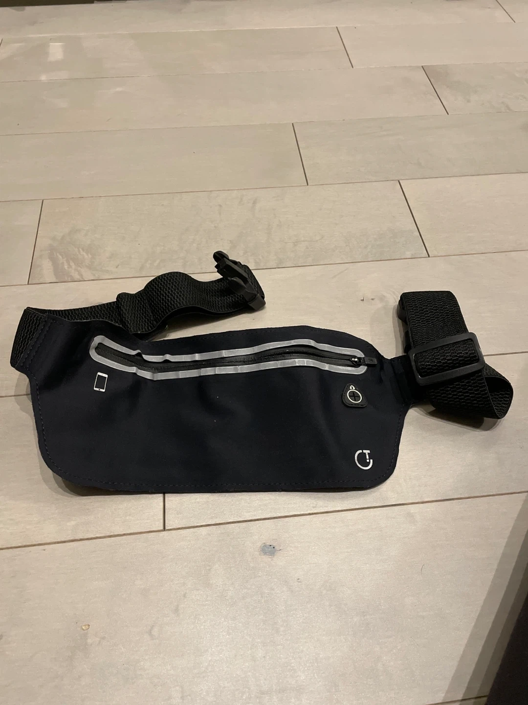 Black running belt in great condition! It's perfect for carrying your phone and other essentials while you're out for a run. Lightweight and portable, this belt will keep your belongings secure and out of the way
