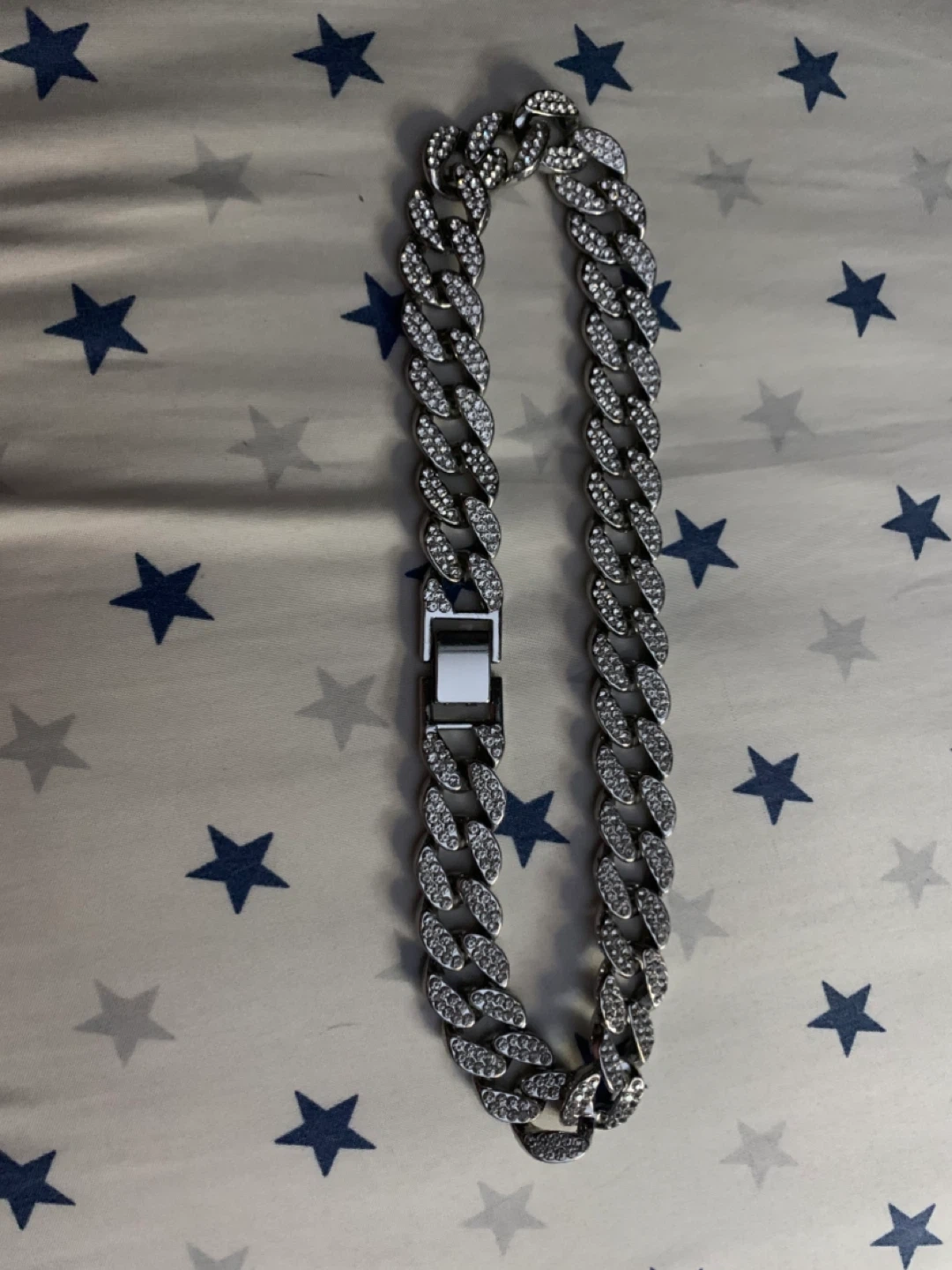 Selling a silver Cuban link chain. It's in great condition and ready to add some sparkle to your style! Perfect for adding a touch of bling to any outfit