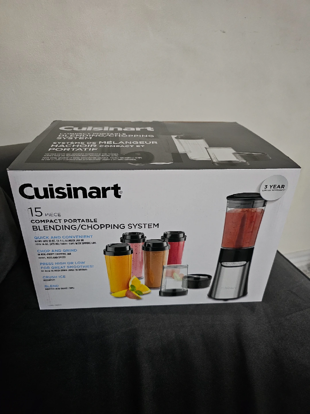 BNIB Qty: 2 $75/ea. Includes: Digital compact base with high/low and pulse settings 16 oz./473 mL travel cups with lids (Qty: 4) 32 oz./0.9 L blender jar 8 oz./236 mL chopping cup Two interchangeable blades Recipe book 350 watt motor delivers "BIG BLENDER" power BPA-free FINAL SALE Accepting cash only please