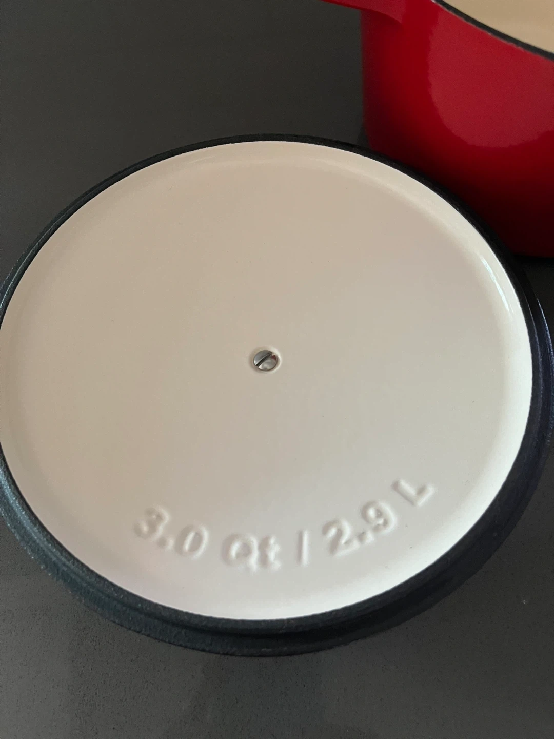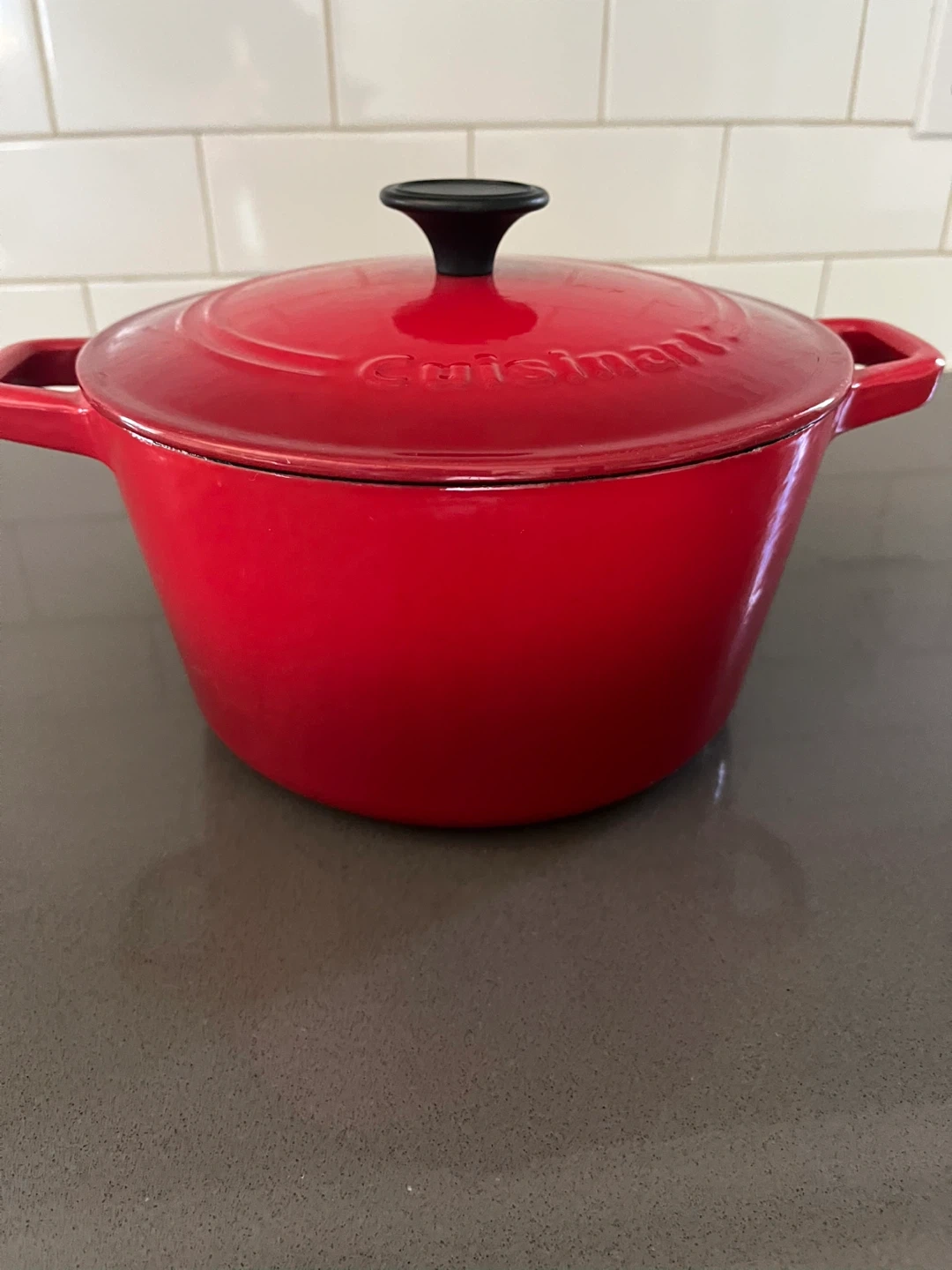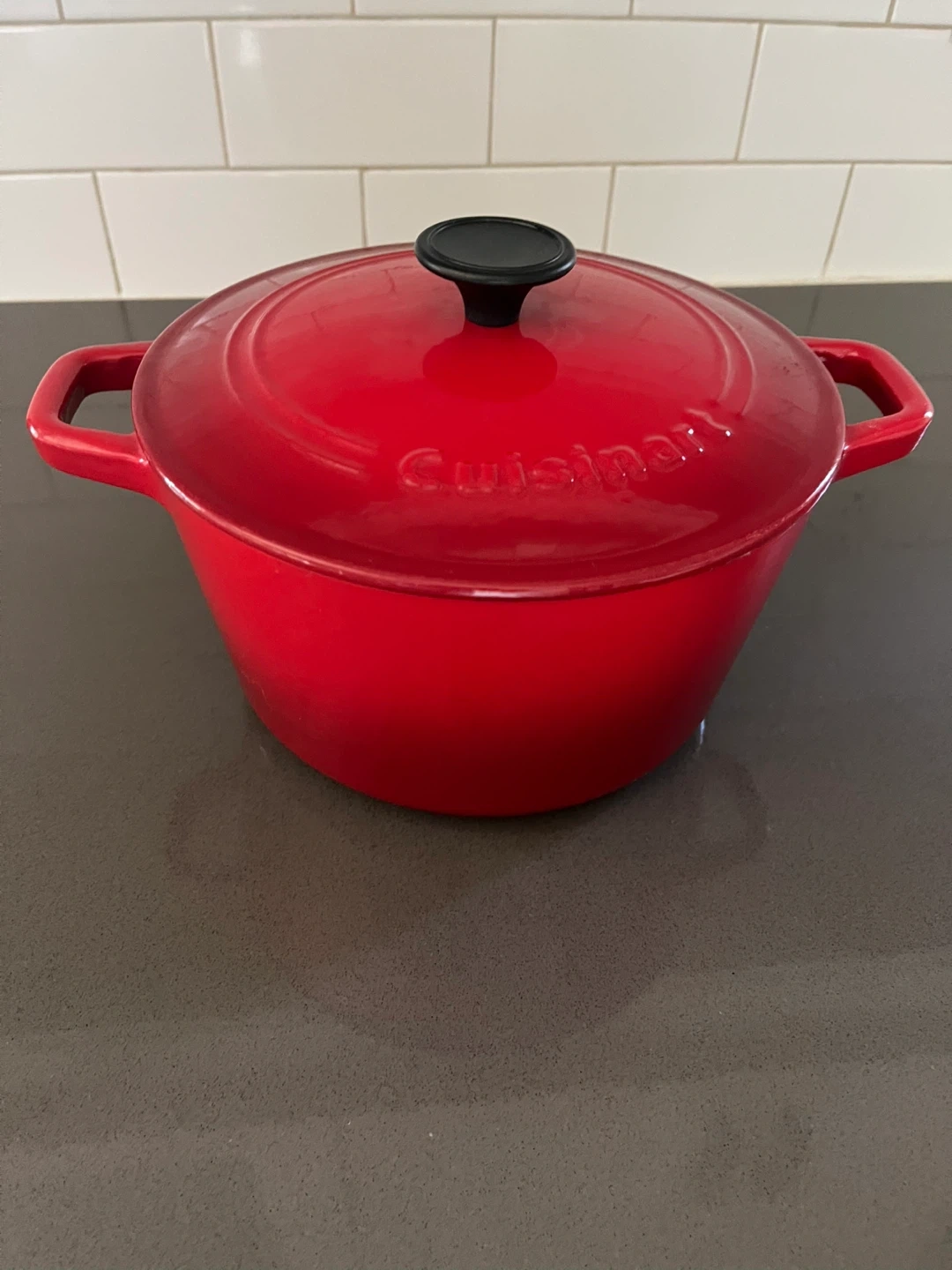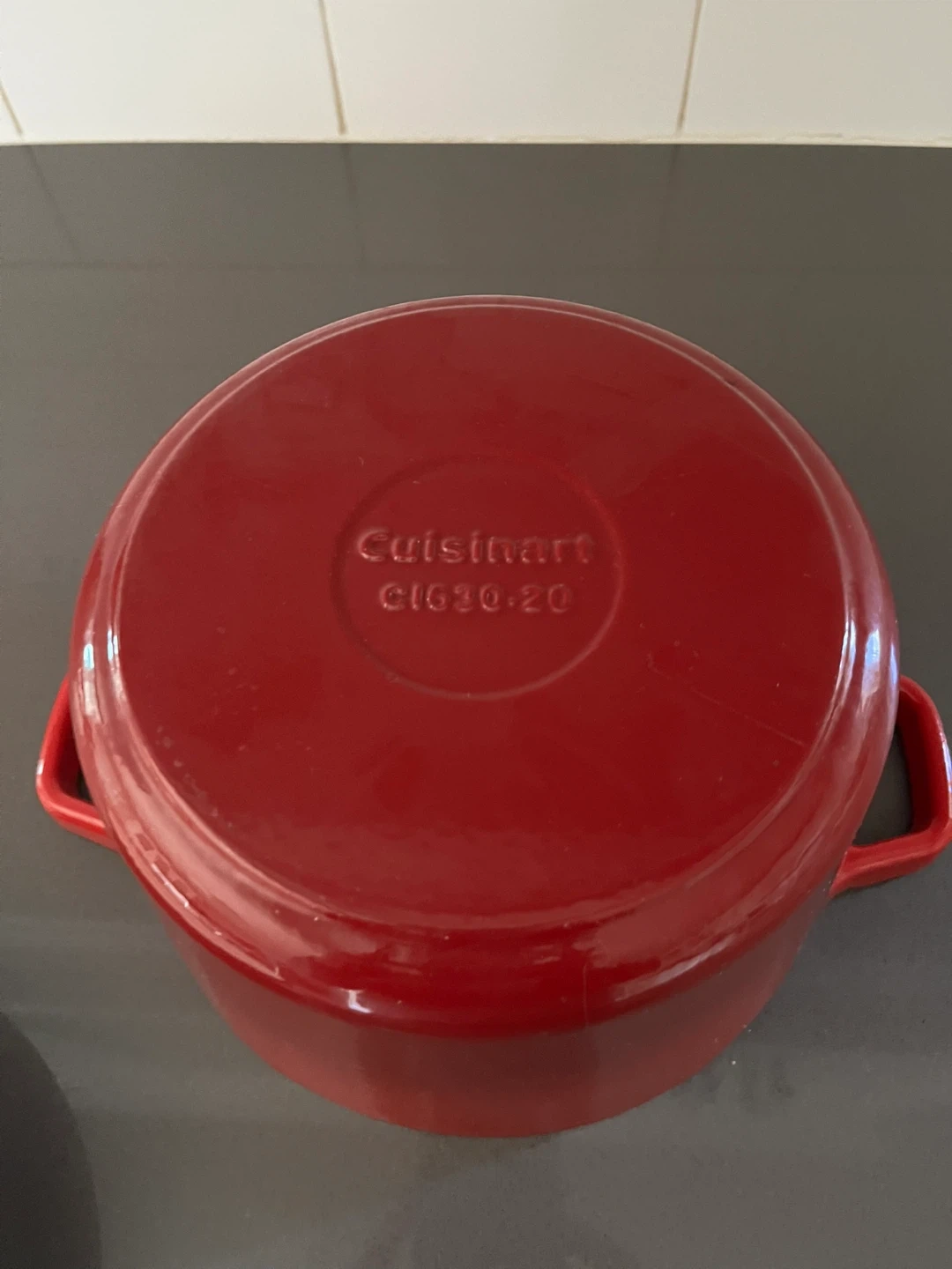 Pick up in Utopia. Selling a lovely red Cuisinart enameled cast iron dutch oven. It's in great shape and only used once. The model number is CI630-20. It has a capacity of 3.0 qt / 2.9 L