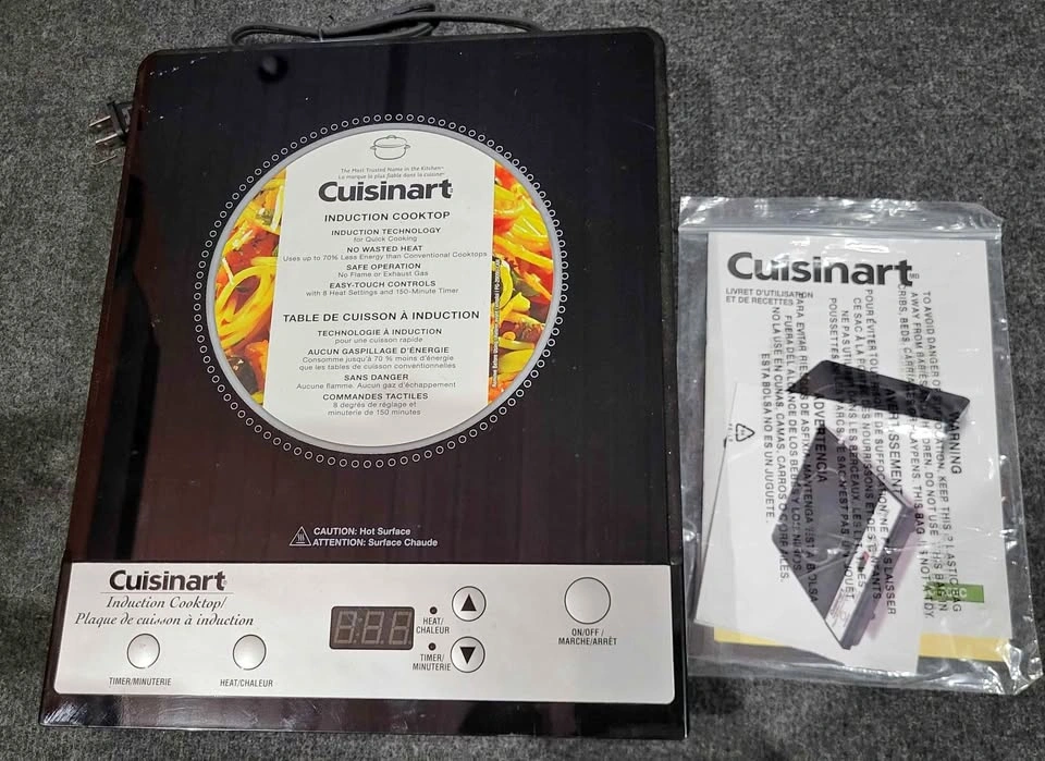 Cuisinart Induction Cooktop features fast heat-up and uses up to 70% less energy than conventional cooktops Easy-touch controls: On/Off, 8 heat settings, 150-minute timer Heat stops automatically 30 seconds after pot or pan is removed for safety Even heating- no hot spots $100 If interested, reply or call & we will arrange a mutual time to come & view/ pick it up. If the ad is posted, it's available.