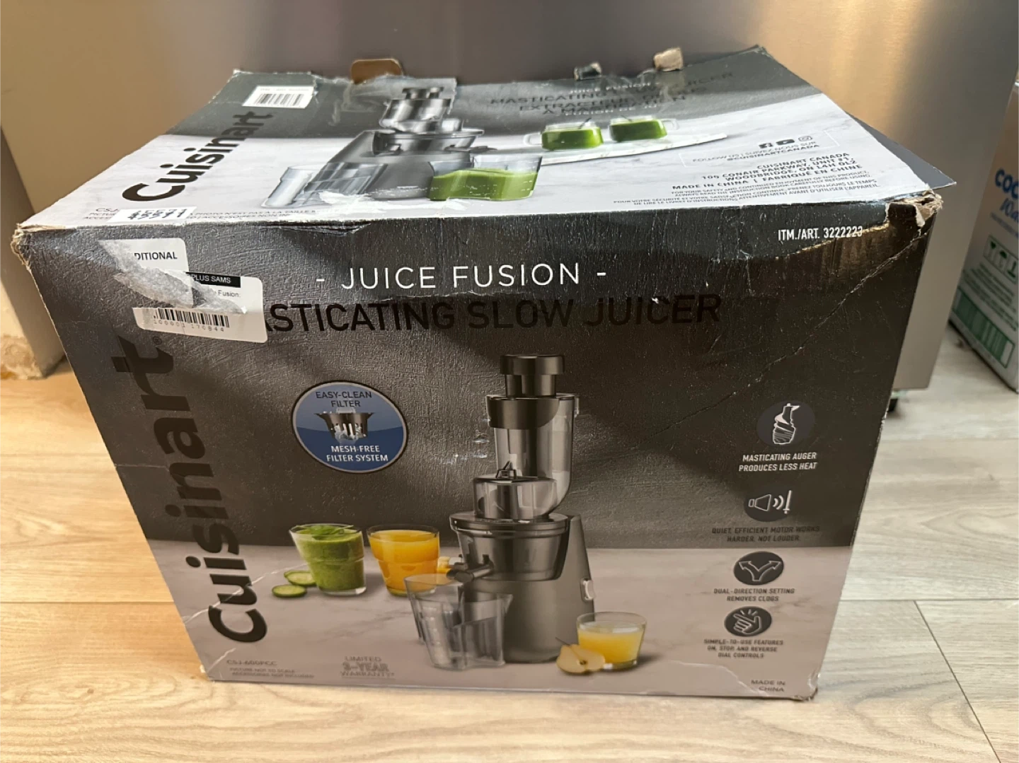 Selling a Cuisinart Juice Fusion Masticating Slow Juicer. It has an easy-clean filter and a mesh-free filter system. The masticating auger produces less heat, and it features a dual-direction setting with simple, single-touch dual controls. Comes with the original box and all components!