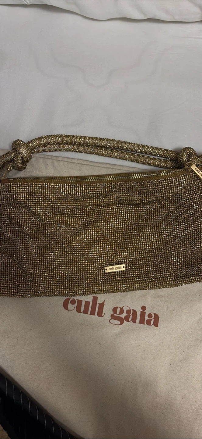 Selling a beautiful Cult Gaia gold rhinestone bag! It's in great condition and comes with the original dust bag. Perfect for a night out or adding a touch of sparkle to your outfit