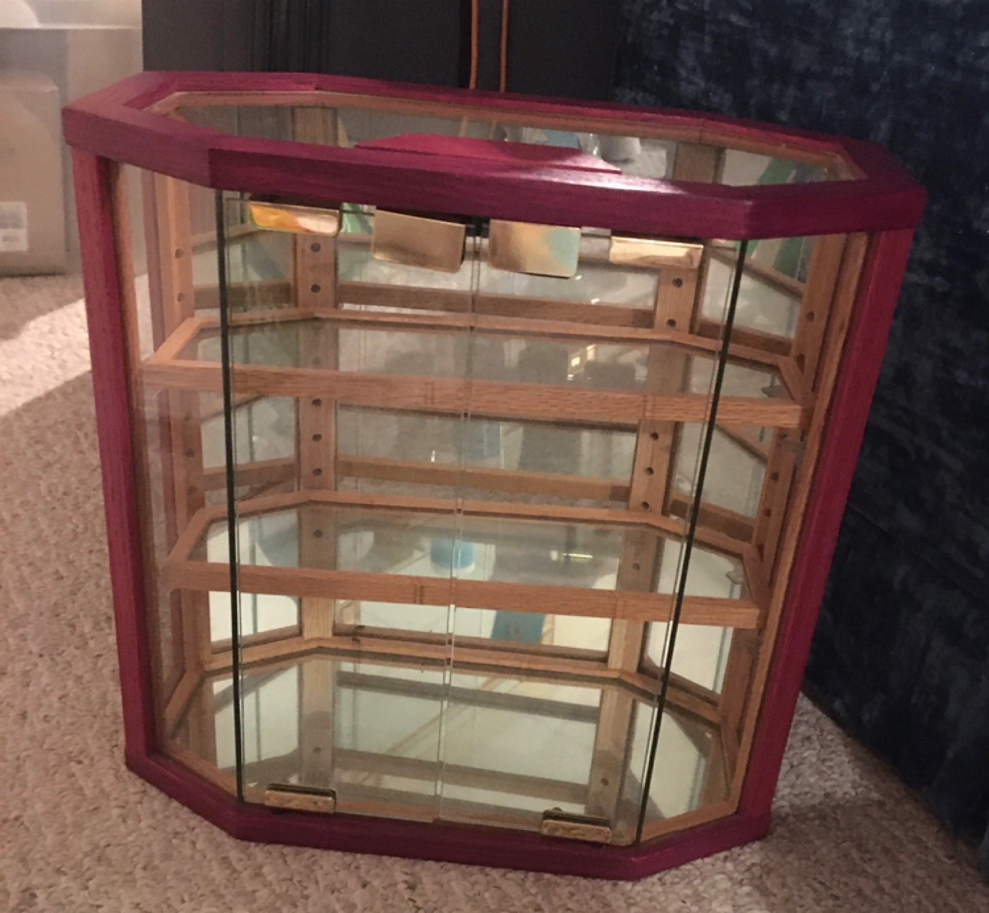 This table top curio cabinet is a great way to display your collectibles with its glass shelves and sides for maximum visibility; it's perfect for any room. This display cabinet is in excellent condition, measuring 14x14x8 and ready to showcase your prized possessions. * Glass shelves * Burgundy trim * Glass door I'm getting rid of some furniture and other items that I no longer need, so I'm hoping to find a good home for this display cabinet. If you're seeing this ad, then yes, it's still available! Thanks and please see my other ads!
