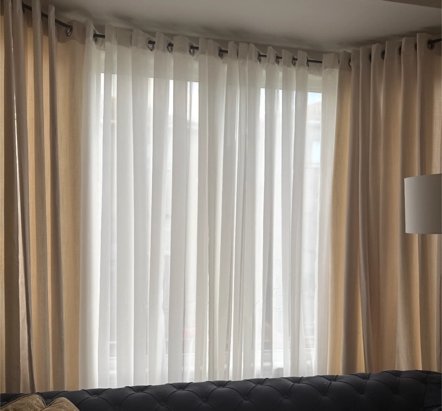 Selling a set of curtains, featuring beige and white panels. They're in great shape and would look lovely in any room! I recently made new velvet curtains, but since I moved to a new house, I want to sell them. There are curtains for 3 rooms (each 9 square meters) and for the living room (two sets, 2 meters each).