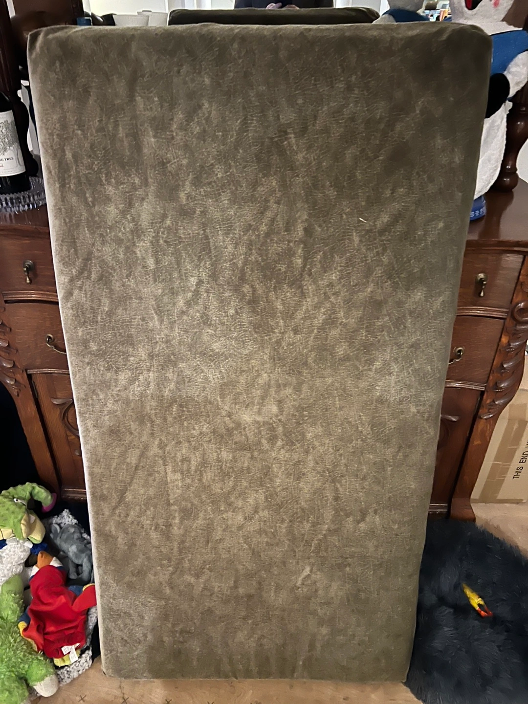 Custom dog bed made from a Foam IKEA crib mattress with a mattress protector, mattress pad (all removable and freshly laundered ) and a custom made removable and washable cover in a dark olive valour upholstery fabric Had them made for the second row of seats in my pickup and the back of the SUV. Provided a comfortable and safe bed on long road trips to the cottage and the maritimes. She was a little pampered and loved beyond words, but it’s time they get loved by another. I have 3 - beige, green, ( both rarely used and the cover was always blanket covered ) and a more loved version in a dark brown cord Mint condition 3” x 28” x 52” Pickup Wellesley/Parliament or Jones/Gerrard - Excellent condition Made for my lab only used a few times